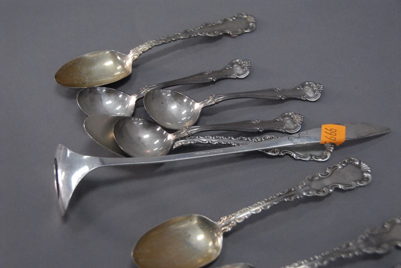 Lot 8: Group of miscellaneous sterling spoons and serving pieces, 11.8 t oz.