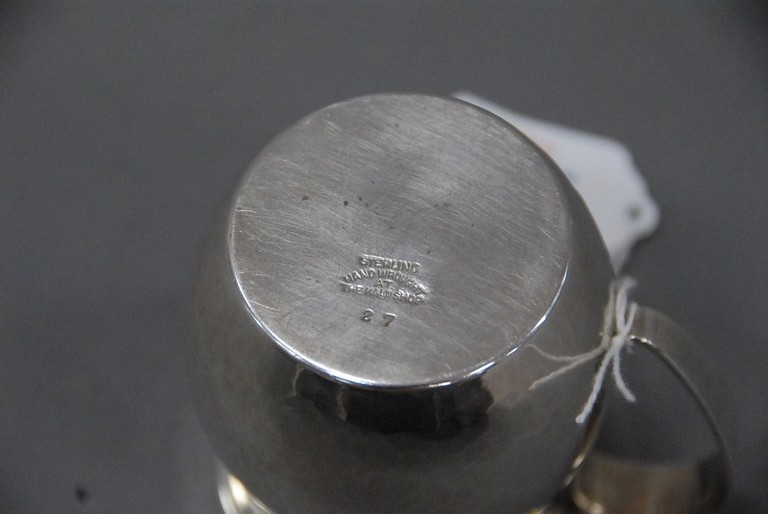 Kalo silver cup marked with K on side. ht. 3 1/2in. 4.5 t oz. From the collection of Thomas and Alice Kugelman