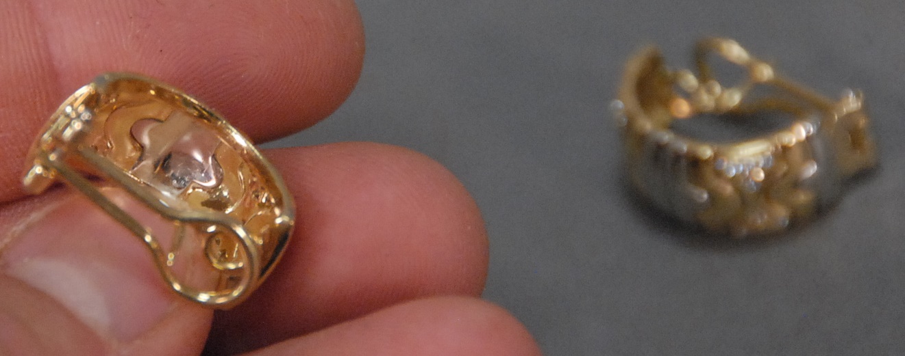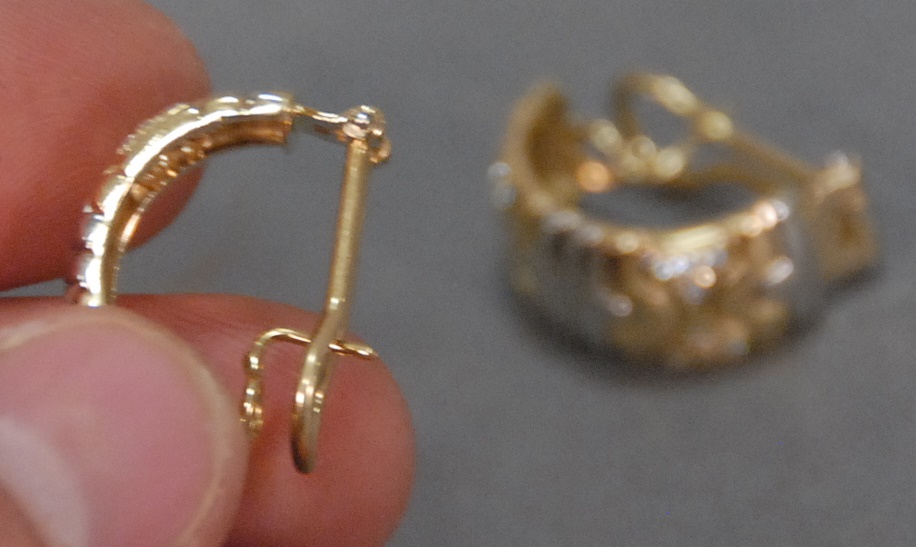 Pair of 18K gold earrings, each set with 16 diamonds, 15 grams total wt.