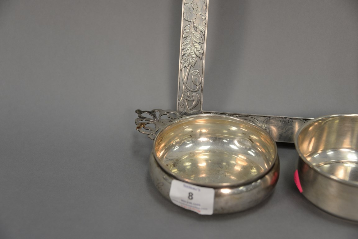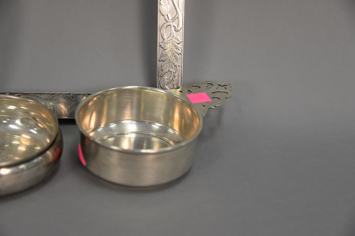 Two sterling silver porringers and sterling frame inside: 10 1/2 x 8 1/4, 15.1 t oz.