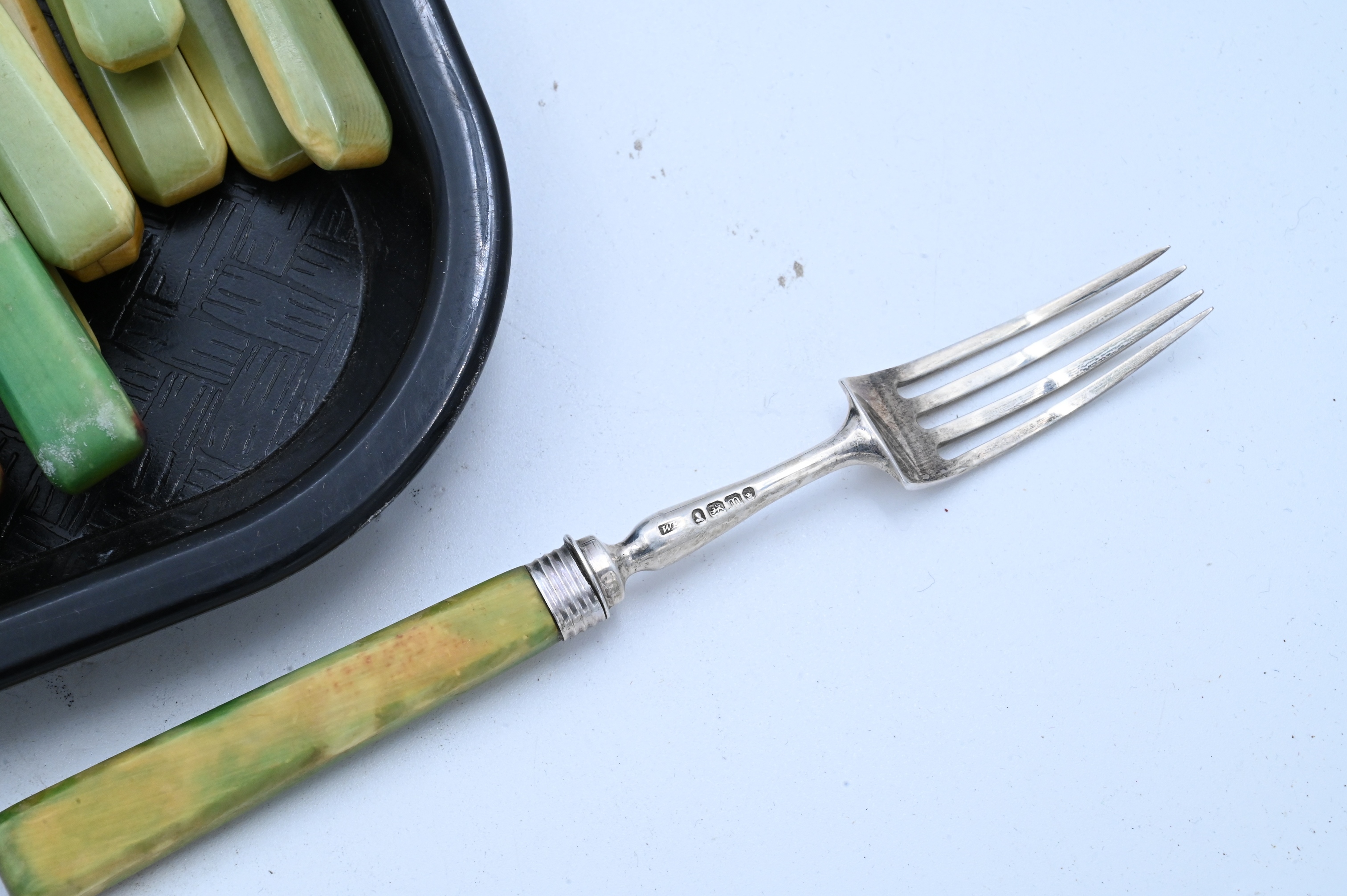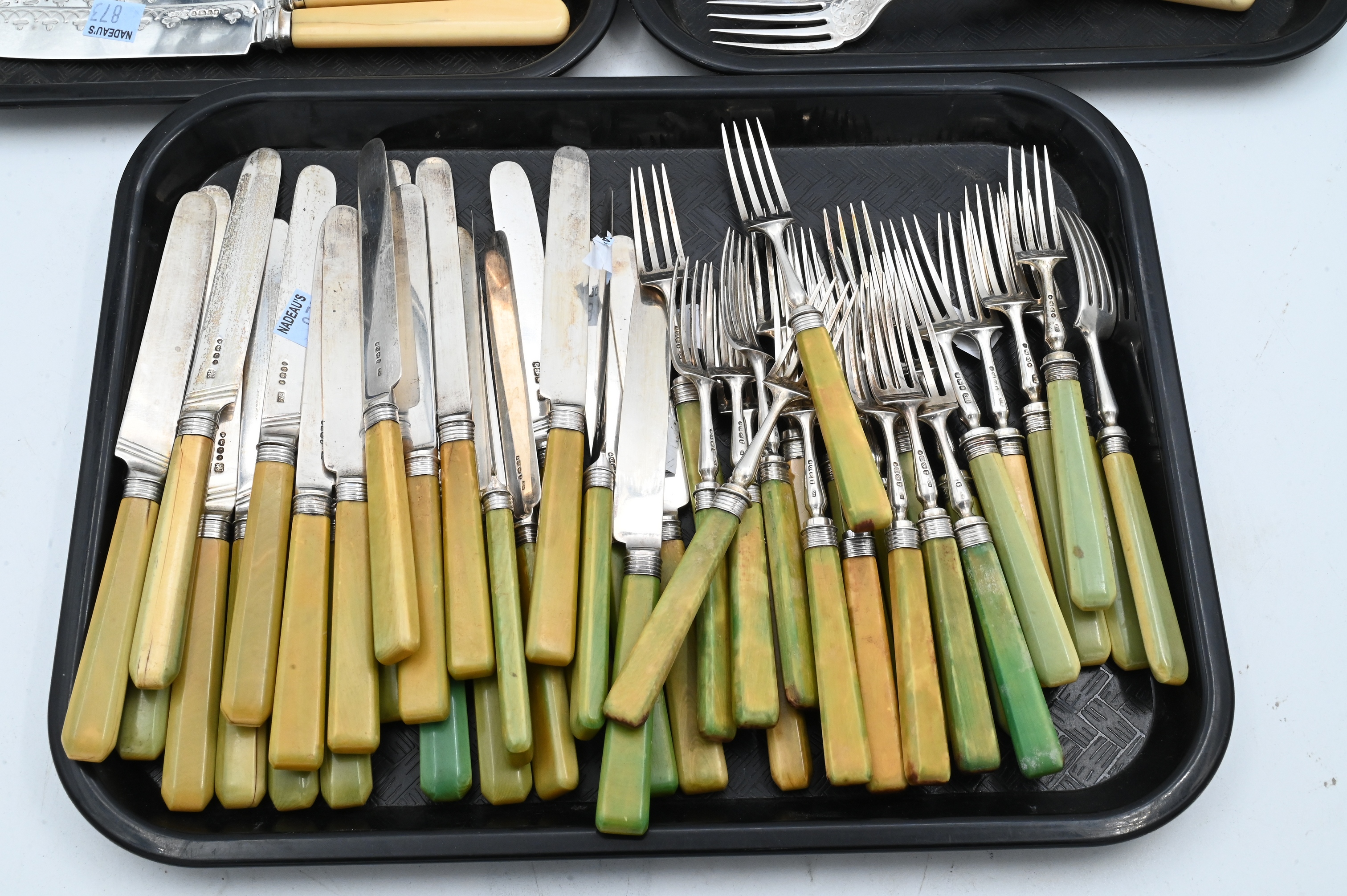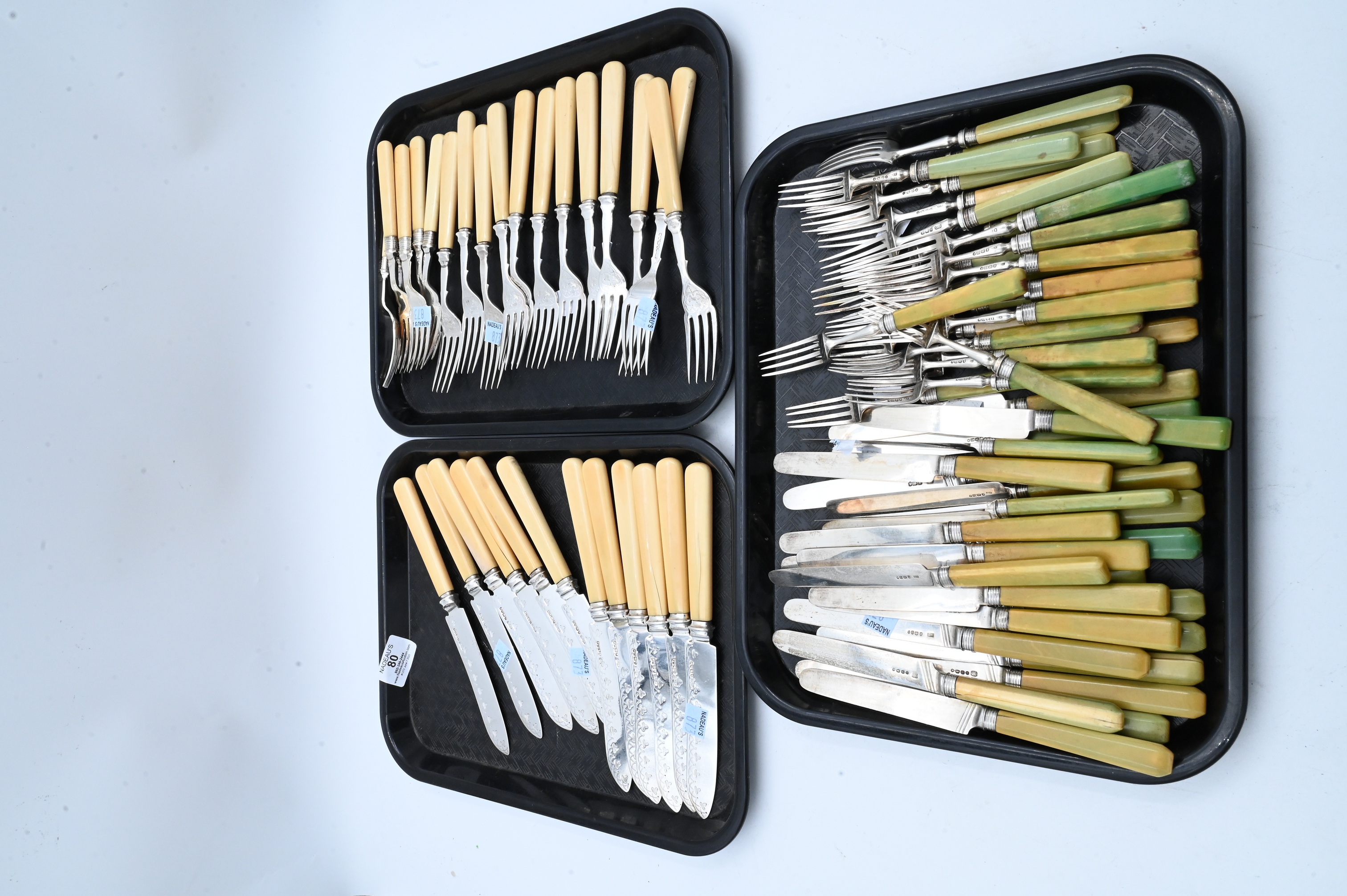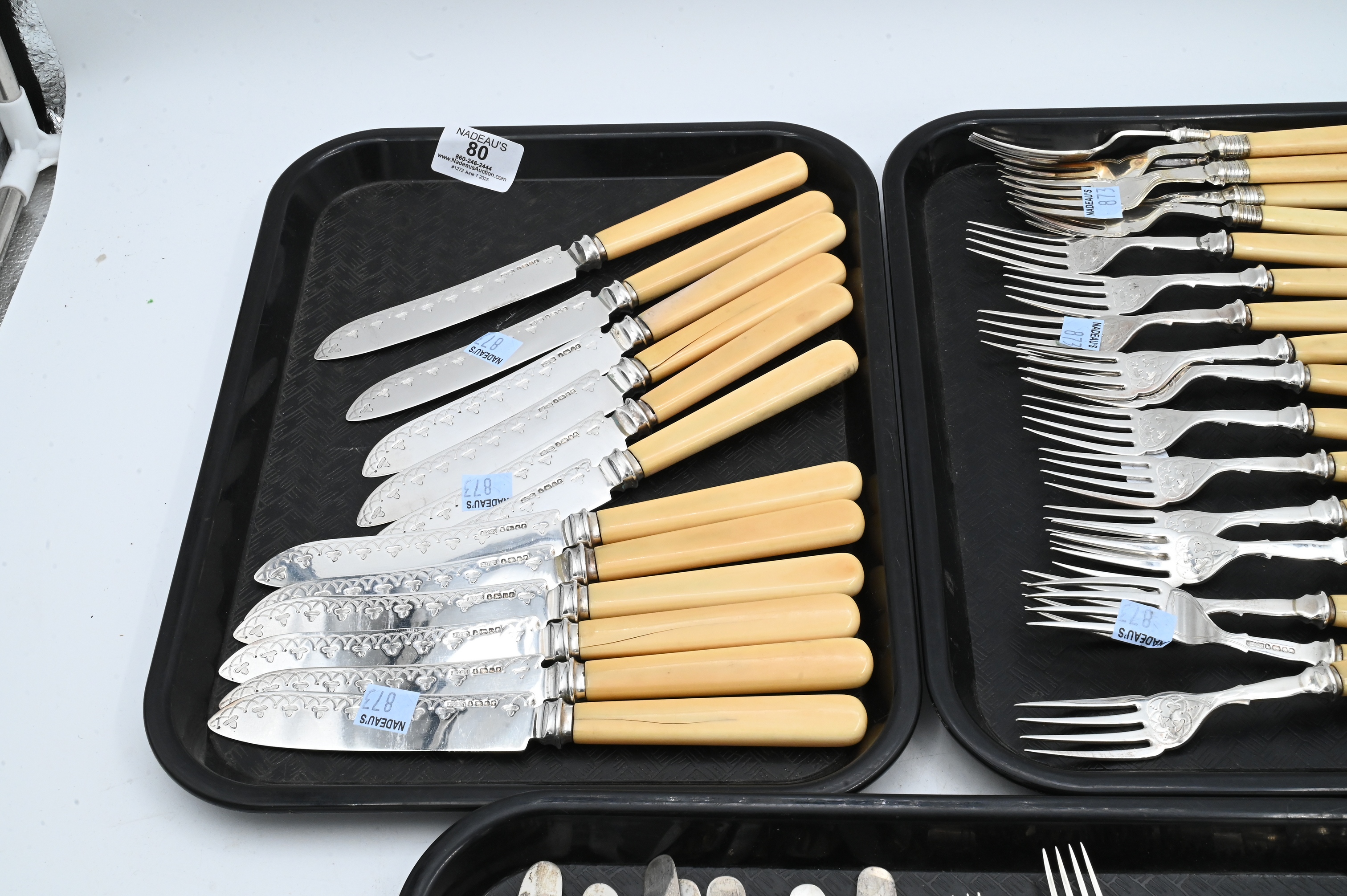 Lot 80: 19th Century English Sterling Silver Bladed Fish Fork and Knife Sets