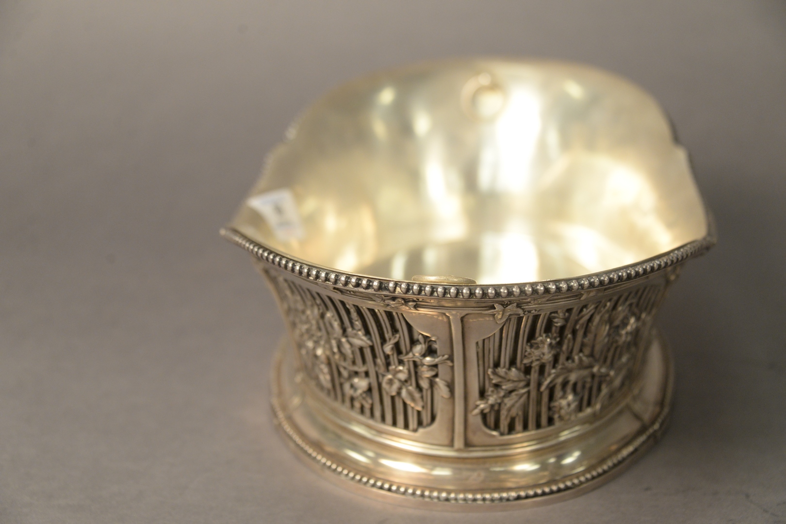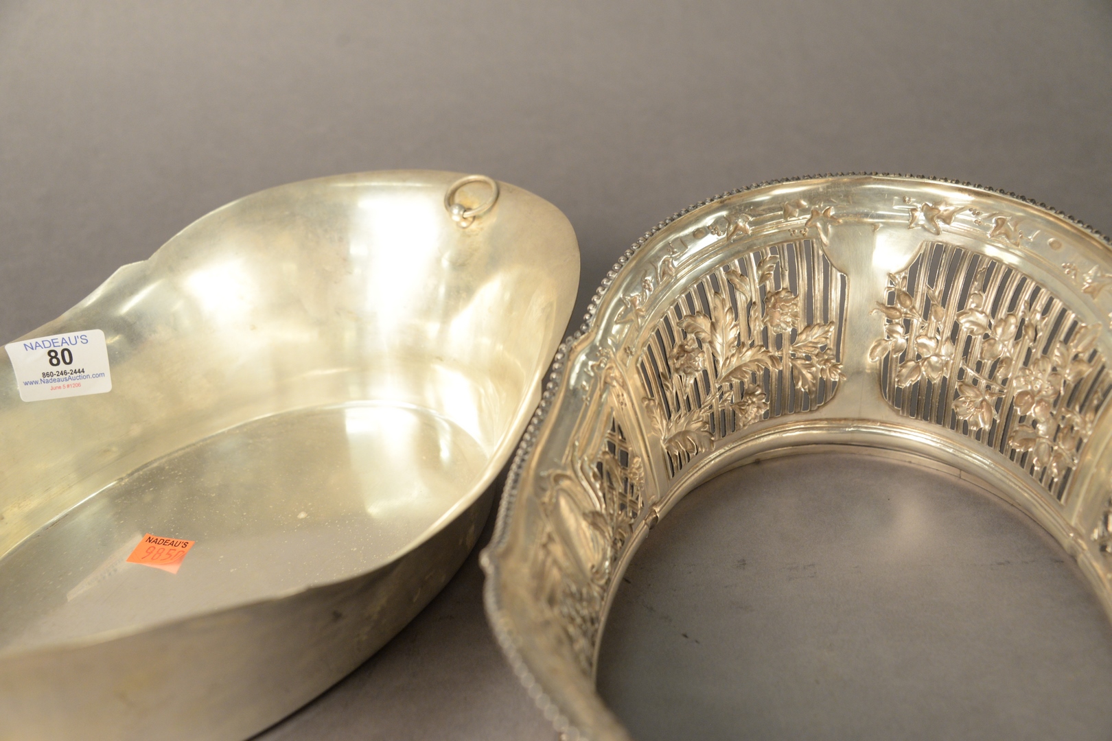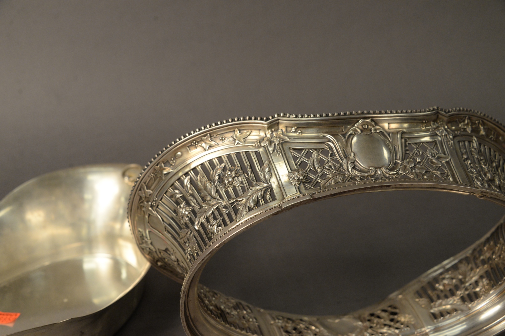 Lot 80: French Silver Console Bowl, with removable liner, touch marked ‘Paris’ to the rim, height 4 1/4 inches, width 14 inches, depth 8 3/4 inches, 25.3 t.oz.