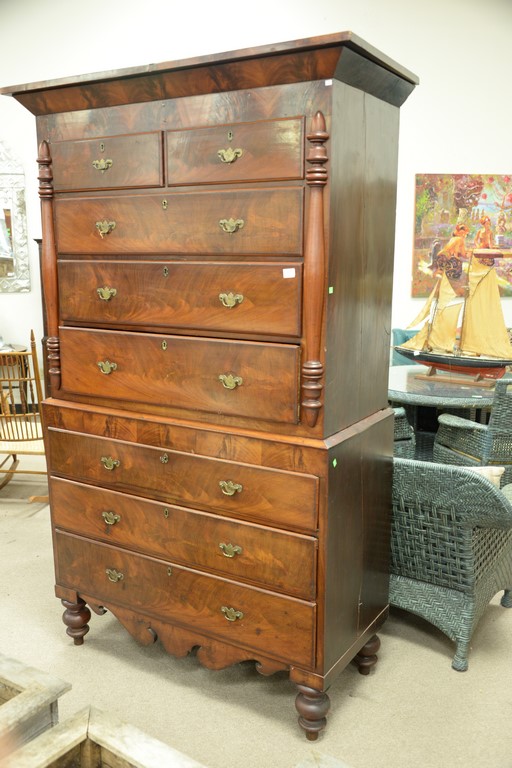 Lot 80: George IV mahogany chest on chest, circa 1840. ht. 86in., wd. 48in.