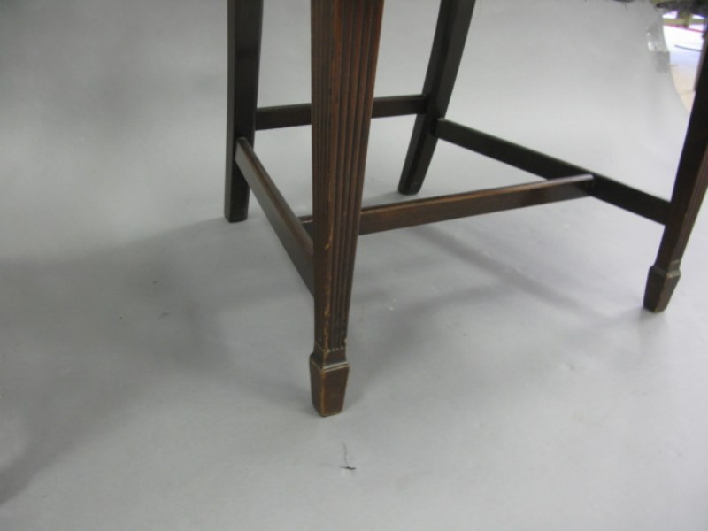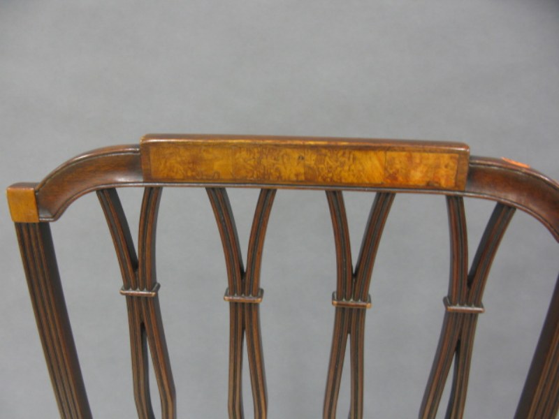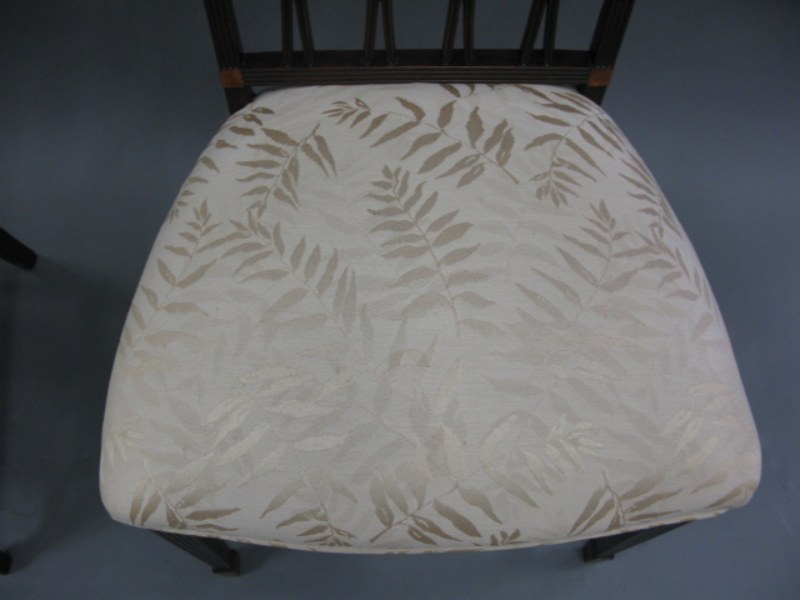 Pair of custom mahogany inlaid Federal style chairs with upholstered seats.