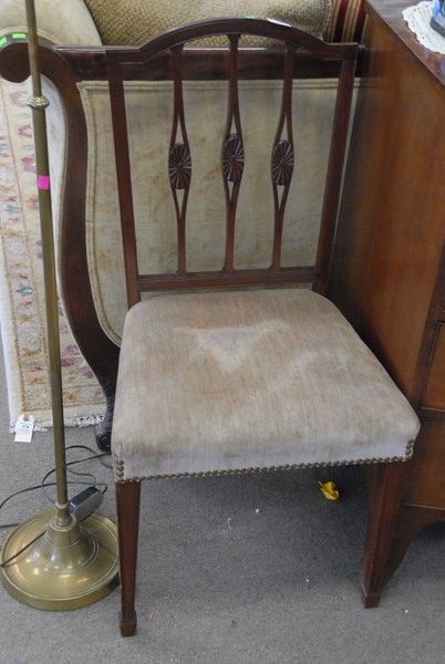Lot 80: Pair of Margolis mahogany Federal style side chairs marked on bottom Handmade by The Nathan Margolis Shop Hartford Conn.