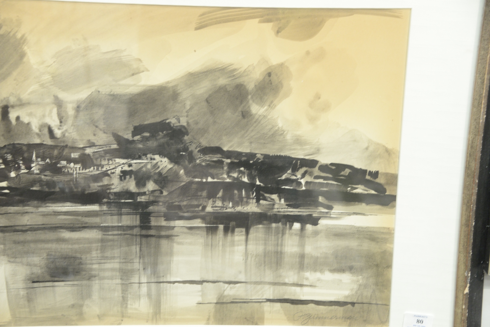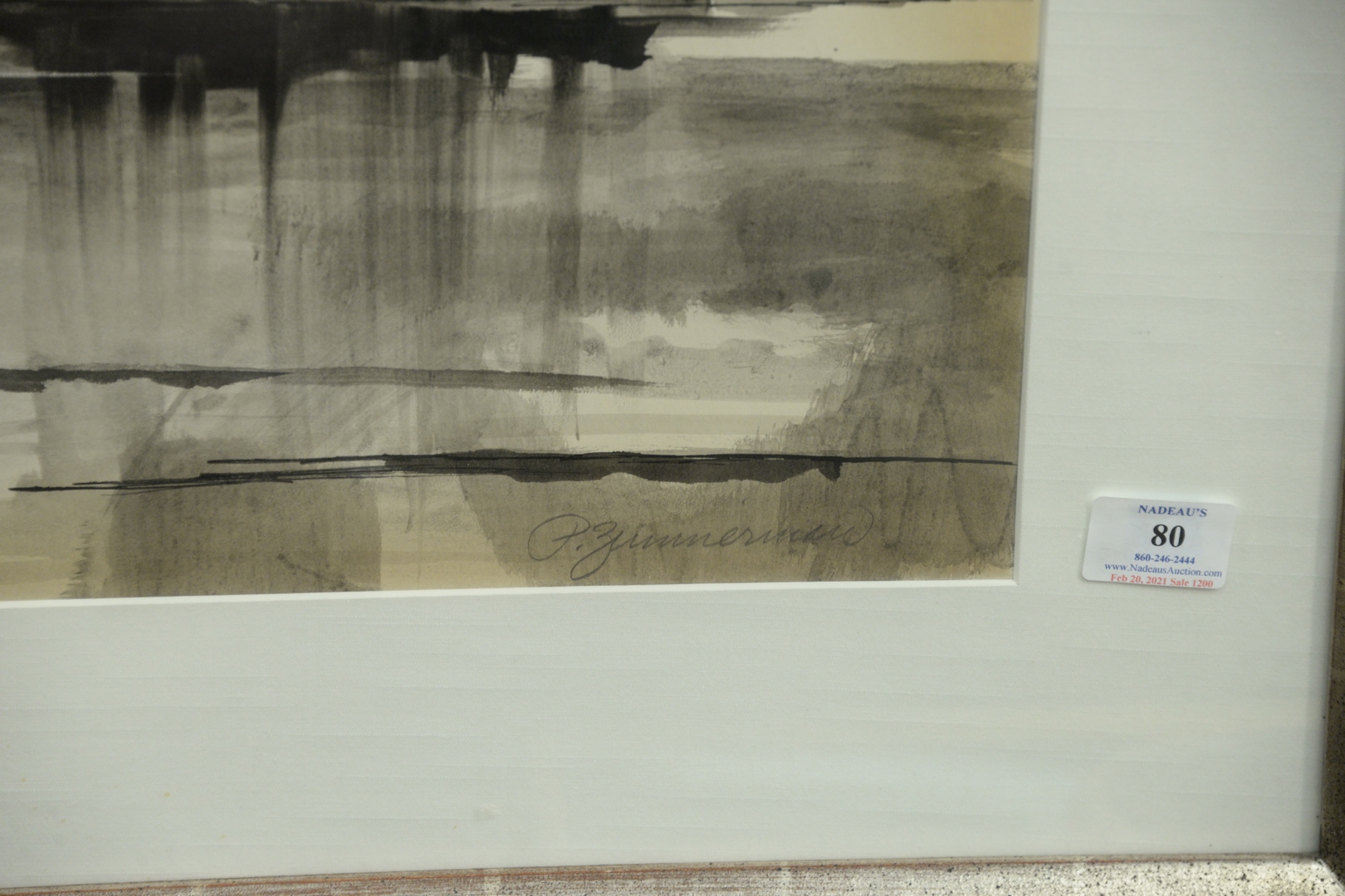 Lot 80: Paul Zimmerman (American, 1921 – 2007), dark landscape, ink wash on paper, signed lower right ‘P. Zimmerman’, 17″ x 22 1/2″. Provenance: The Estate of Alan Gans, Mulberry Point, Guilford.