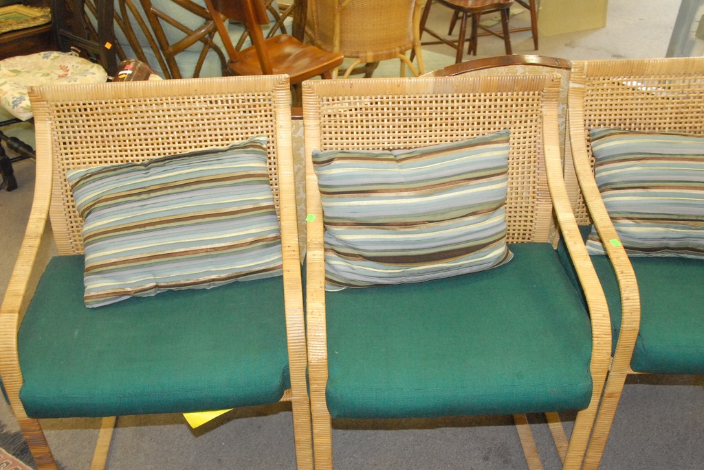 Lot 80: Set of four woven rattan armchairs with steel frames.