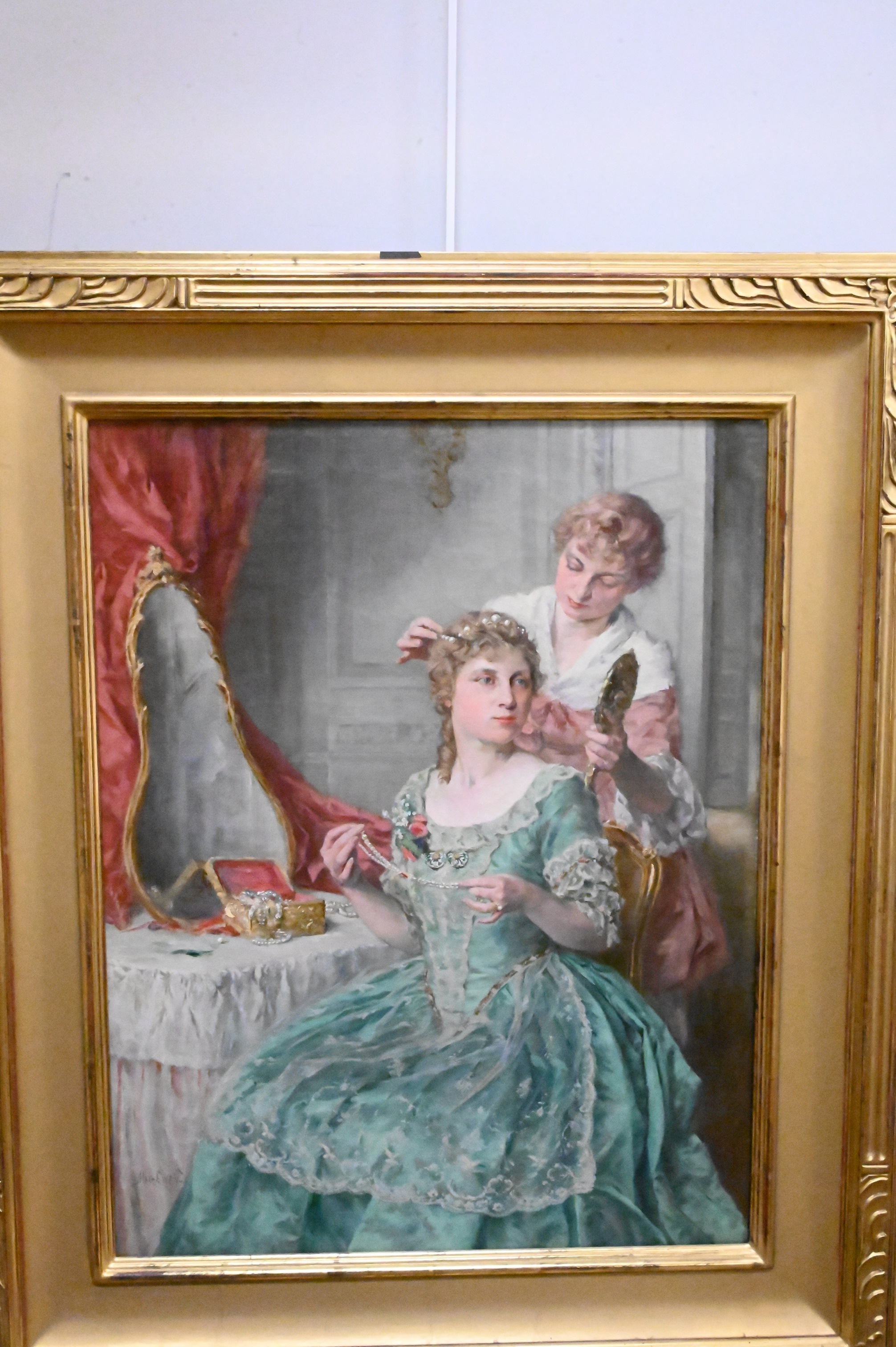 Walter Maxwell MacEwen (1860 – 1943), oil on canvas, “Dressing”, signed ‘Mac Ewen’ lower left, 24 1/2″ x 19″.