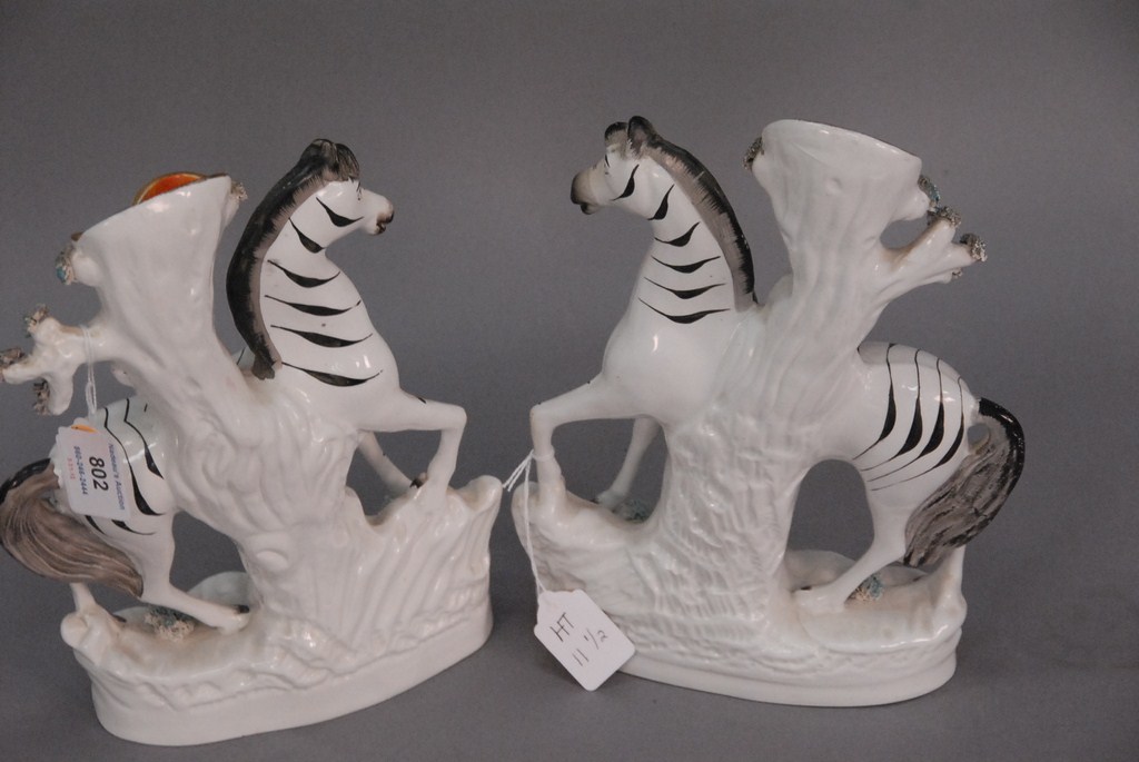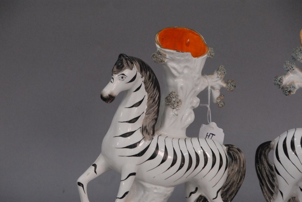 Pair of Staffordshire zebra vases, 19th century. ht. 11 1/2in.