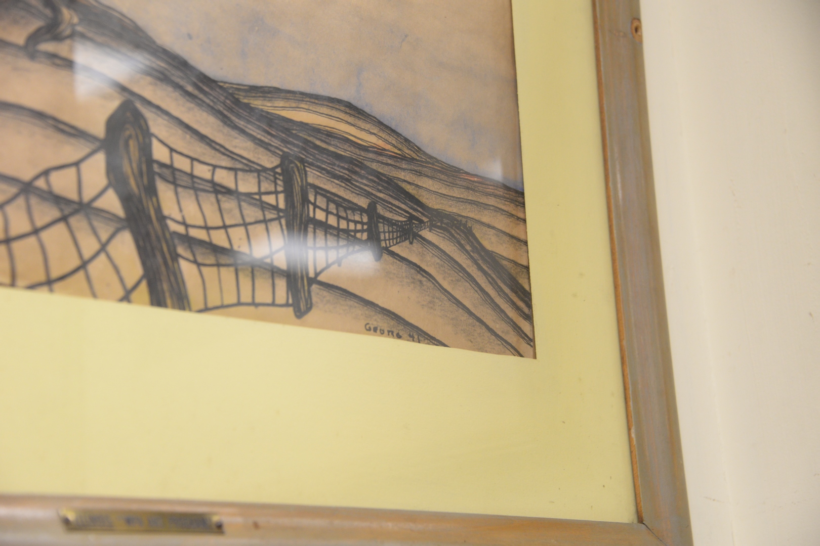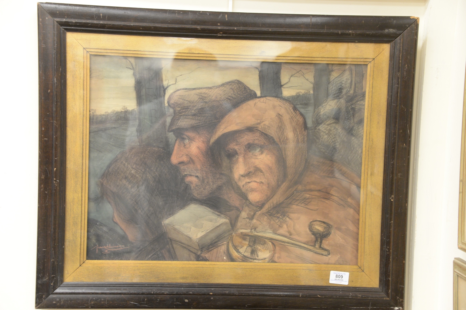 Four Piece Lot, to include a landscape with a river, pastel on paper, marked indistinctly lower leftIllinois watercolor on paper, signed and dated Georg ’41 lower right with a frame plate inscribed Illinois – WPA Art Program a landscape with a monument in the background, pastel on paper, unsigned along with three figures in hats in a landscape, pastel on paper, signed indistinctly and dated 14 lower left 17 x 23 1/2.