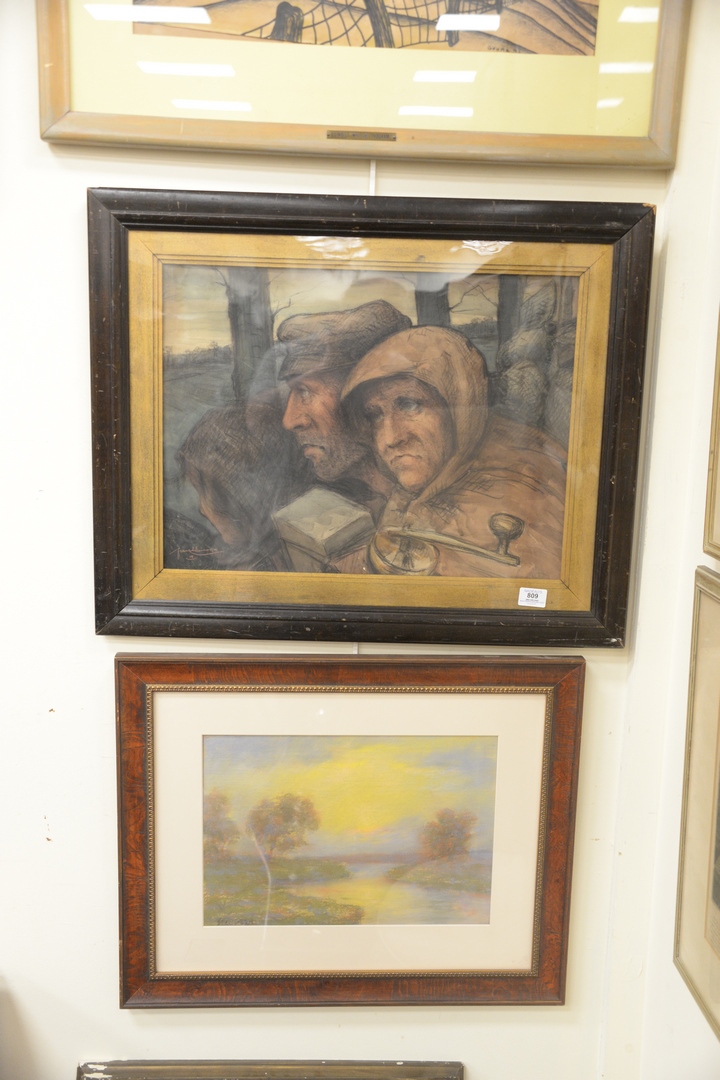 Lot 809: Four Piece Lot, to include a landscape with a river, pastel on paper, marked indistinctly lower leftIllinois watercolor on paper,…