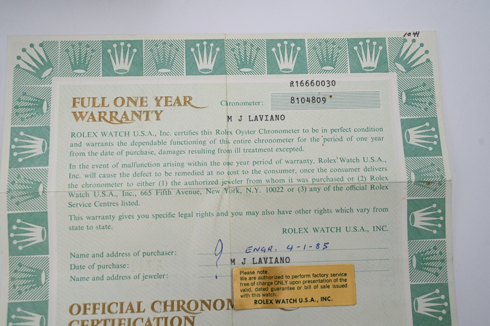 Rolex Sea Dweller Stainless Wristwatch, having original boxes, tag and paperwork, model R16660030, serial number 8104809.