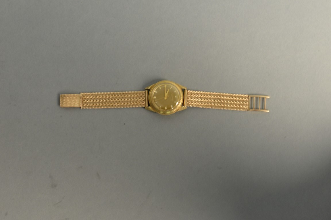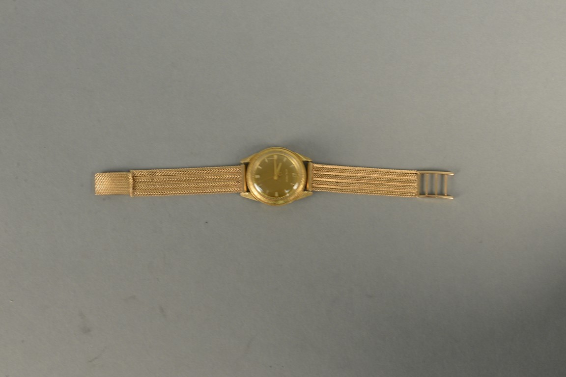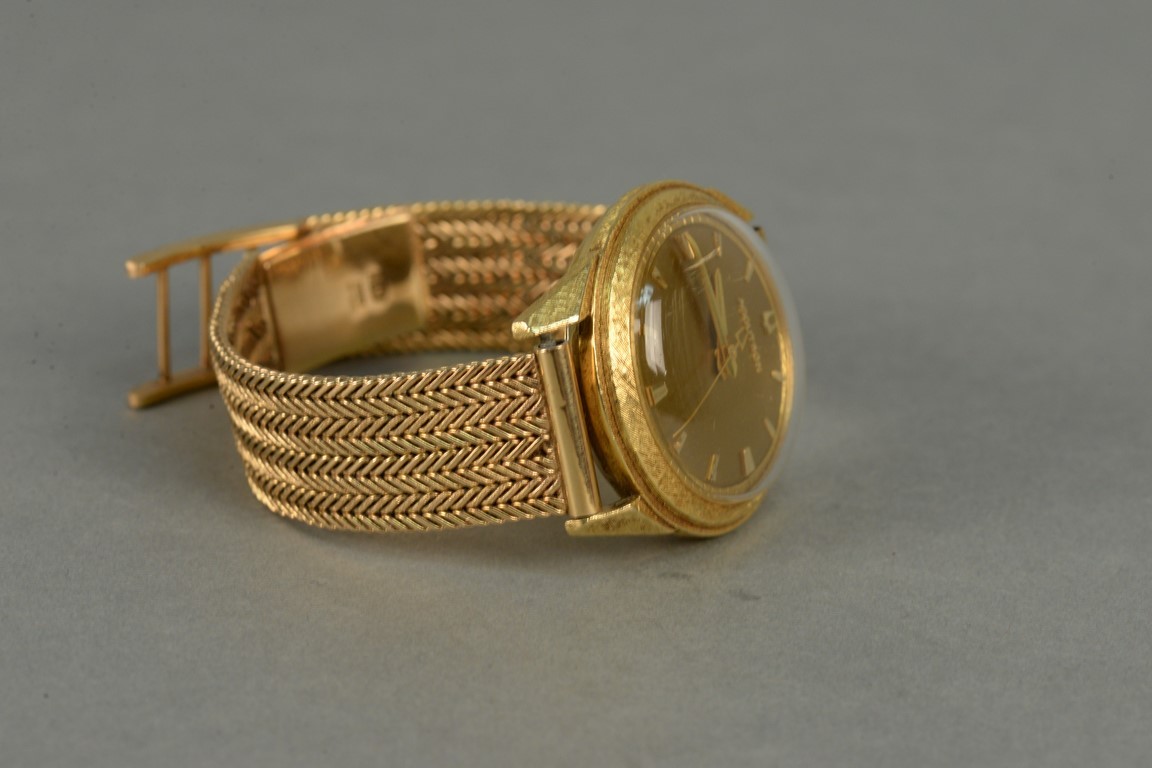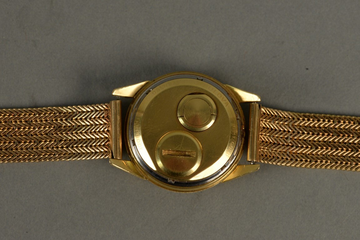 Bulova 18K gold Accutron mens wristwatch with 18K gold mesh band. total weight 75 grams