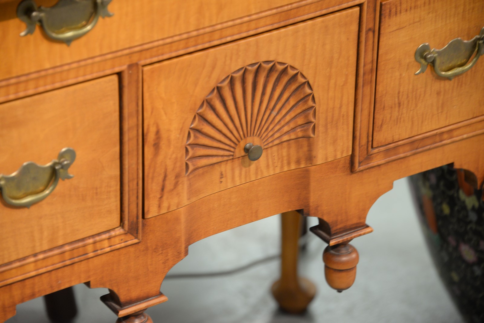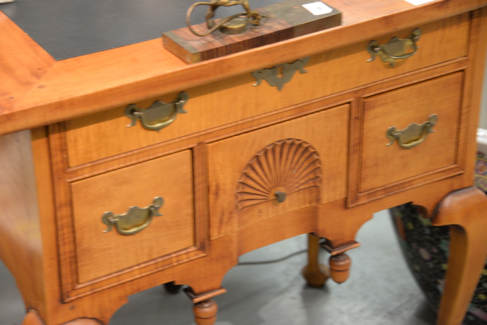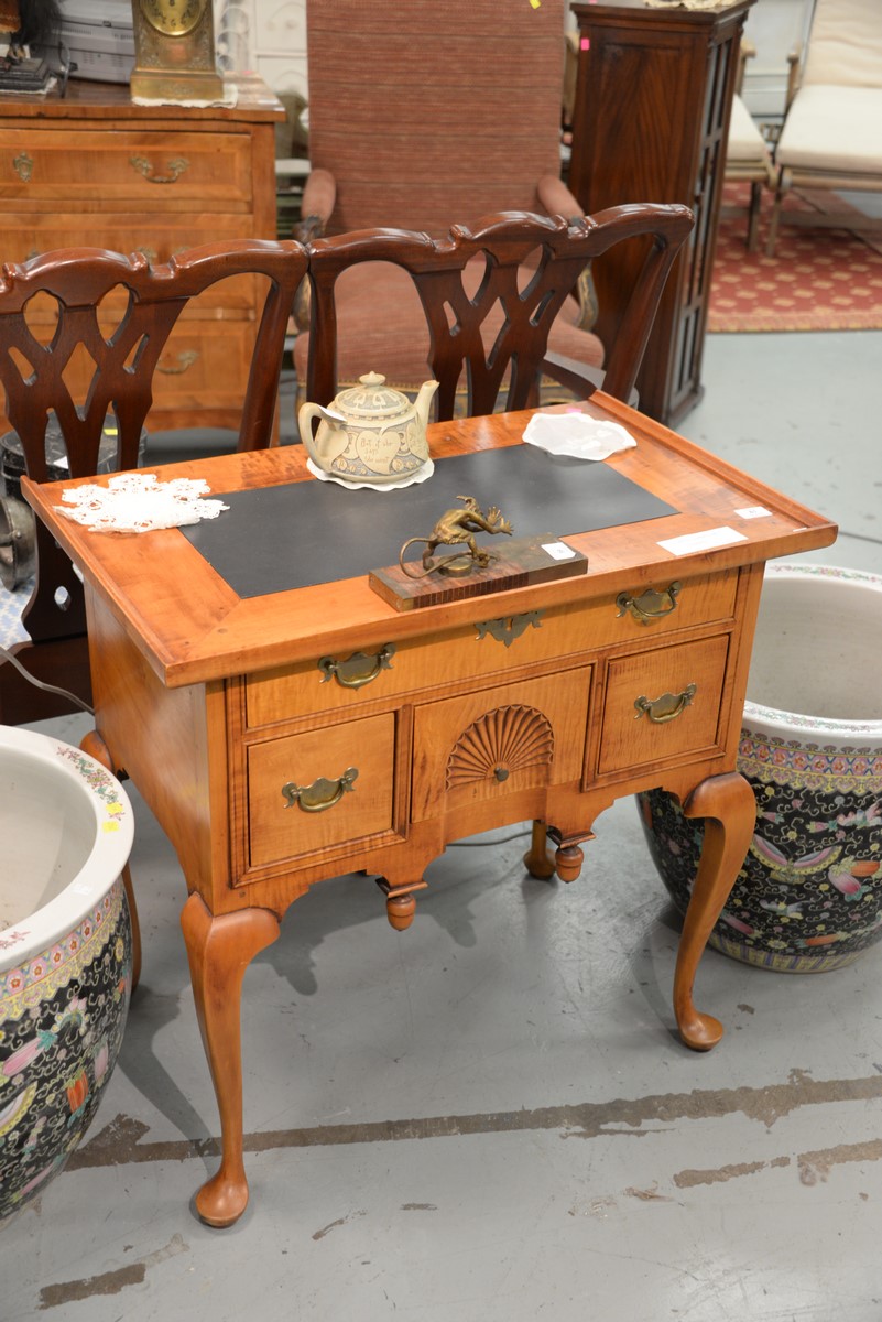Lot 81: Eldred Wheeler lowboy, figured maple top with center slate insert.ht. 30 in. wd. 31 1/2 in. dp. 20 in.