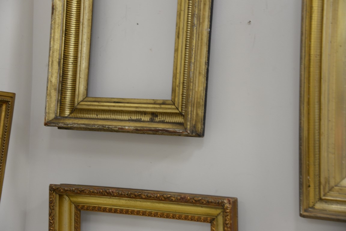 Four gilt frames including two small Victorian and two gilt Federal. inside dimensions 17 3/4 x 27 1/4 x 3, 20 1/4 x 9 1/4 x 3 , 10 1/4 x 16 1/4 x 2, and 17 1/4 x 13 1/4 x 2 1/2.
