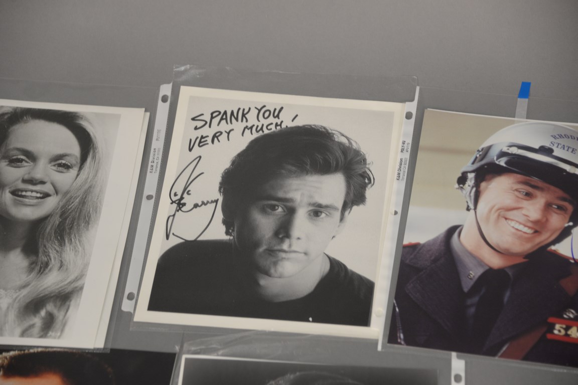 Lot 81: Group of 19 photographs, 13 are autographed including 2 Dyan Cannon, 3 Glenn Close, 1 Antonio Banderas, 7 Jim Carey 1 with COA, an…