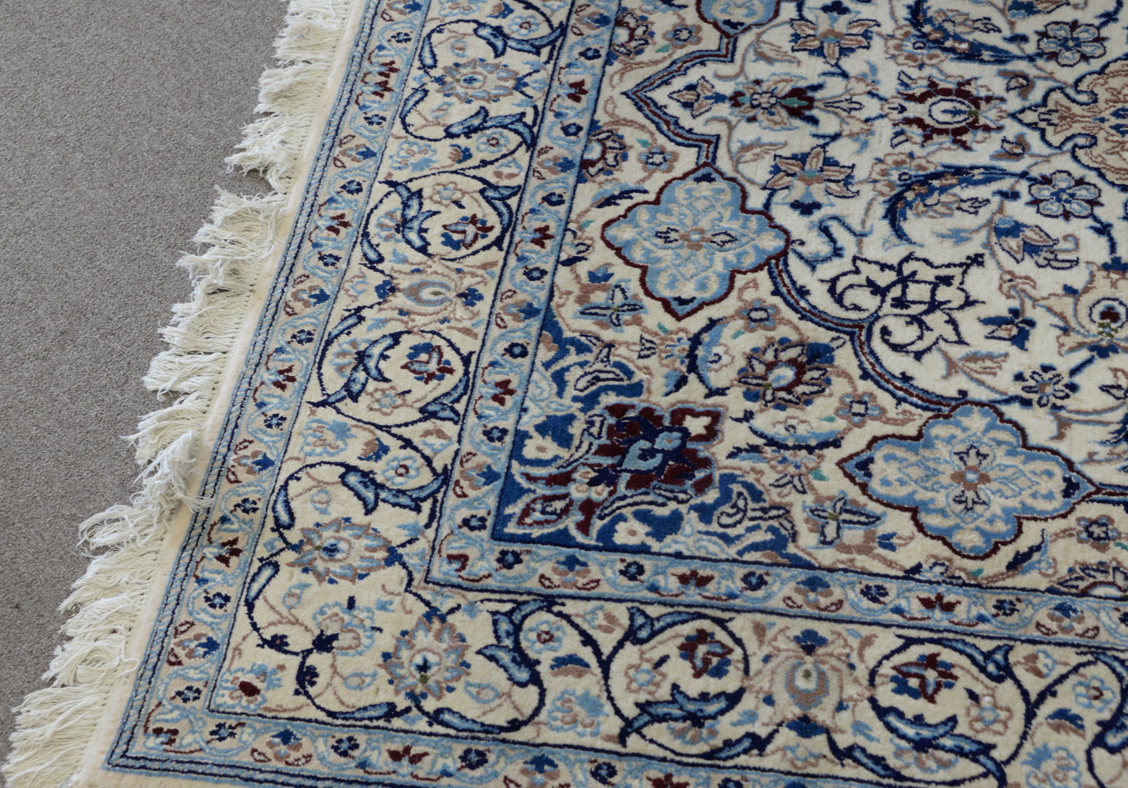 Oriental area rug, possibly with silk highlights, 5’3 x 8’9.