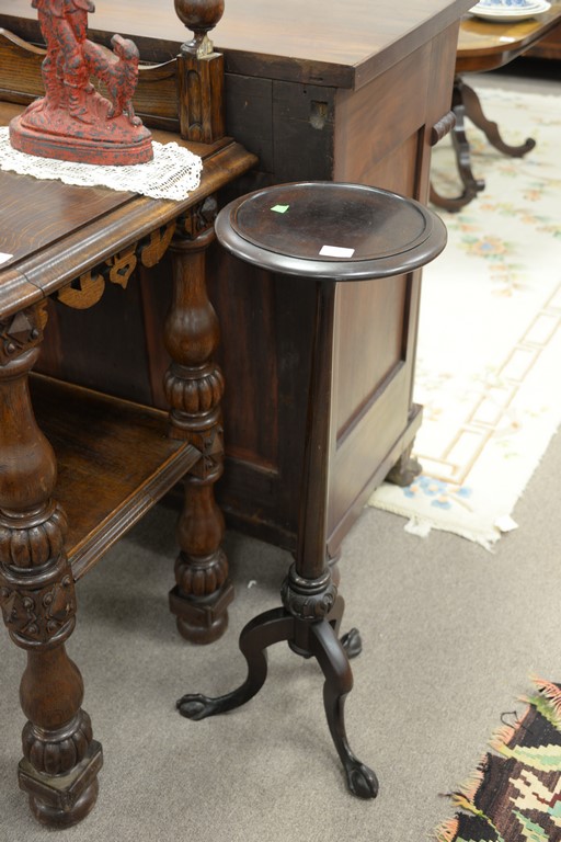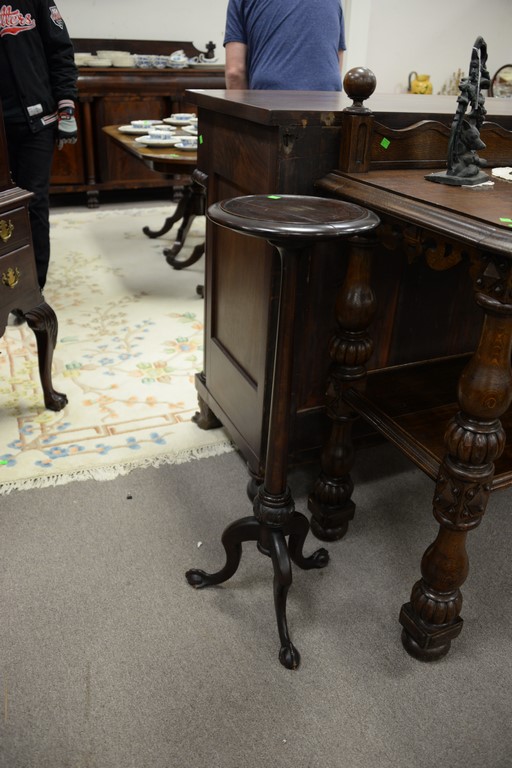 Pair of mahogany fern/plant stands with ball and claw feet. ht. 37in.