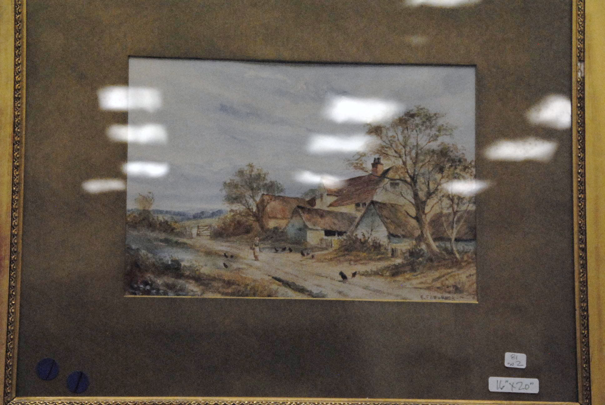 Pair of watercolors of peasants near farmyards, signed E. Faulkner