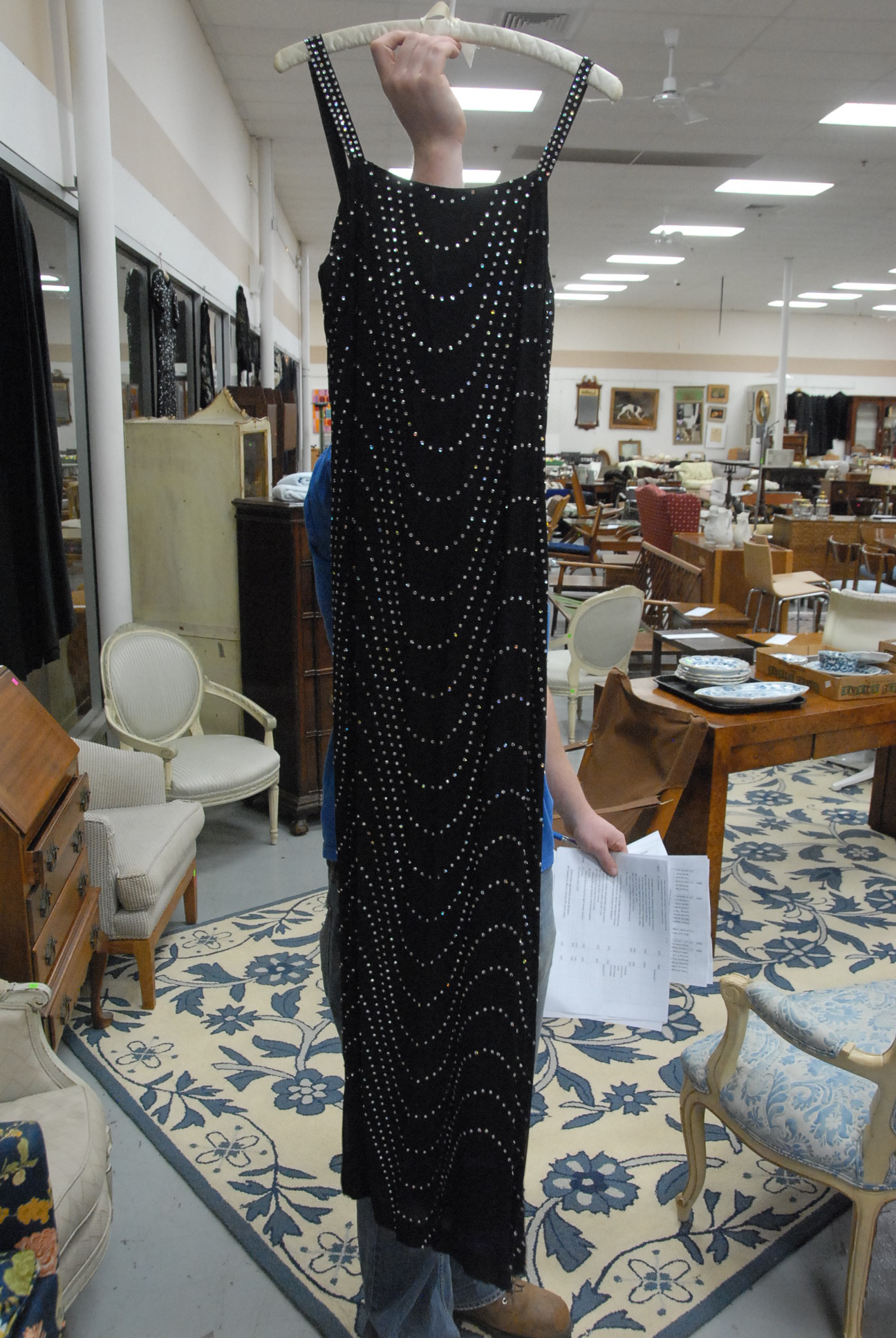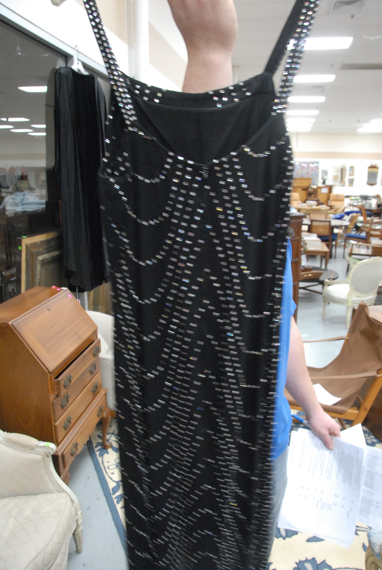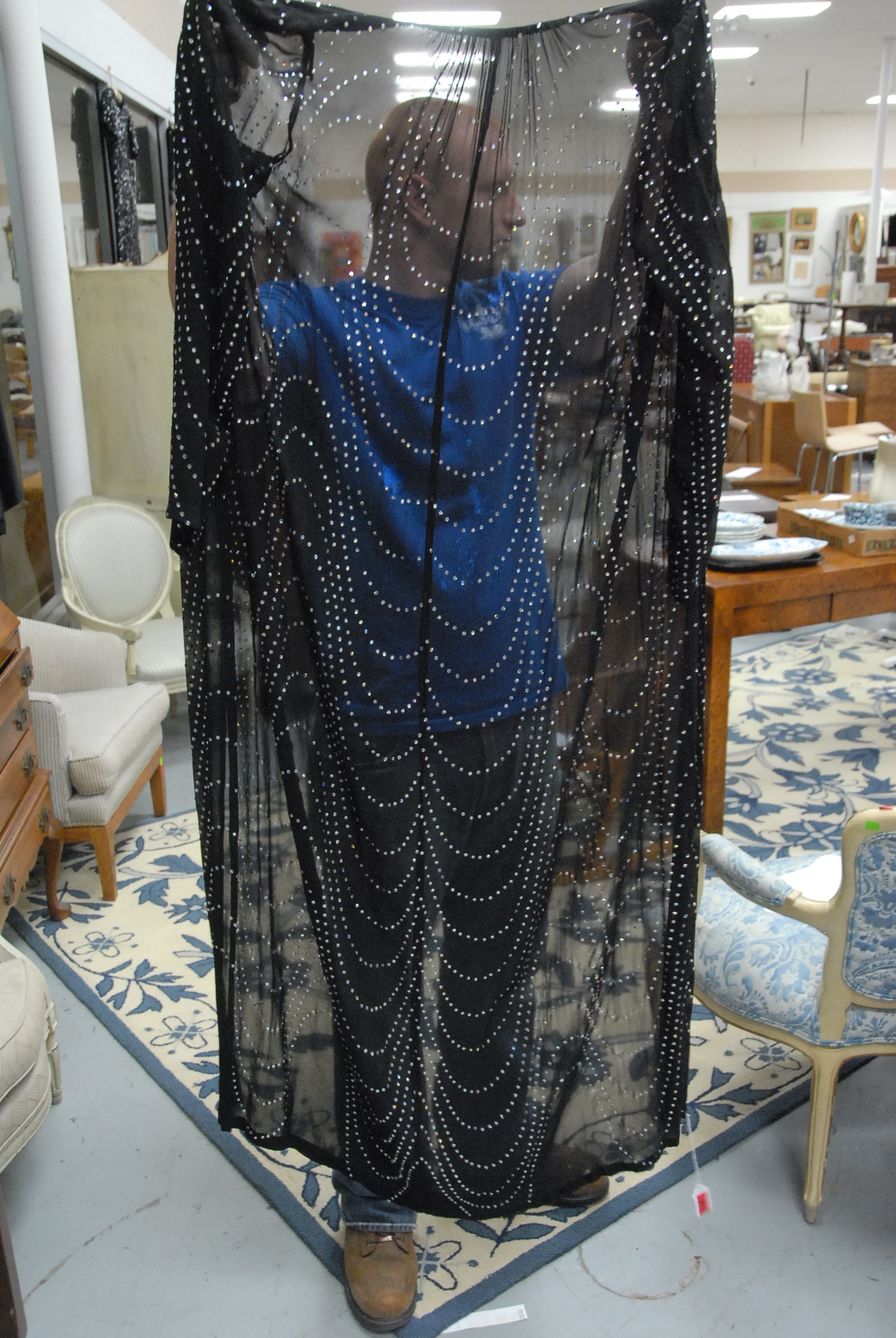 Lot 81: Pierre Balmain, sheer black full length evening gown and matching cover up mounted with sequins slight wear to bottom