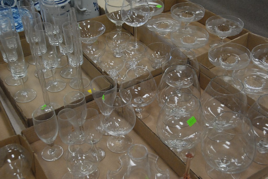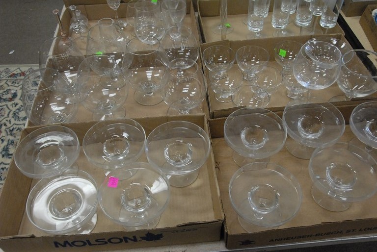 Six box lots of various crystal stems, dishes, vases, and bells.