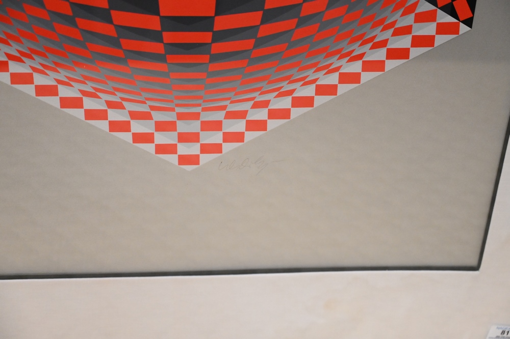 Victor Vasarely (French, 1906 – 1997), serigraph in colors on paper, “Mertan”, pencil signed and numbered 19/250 in the lower right,…