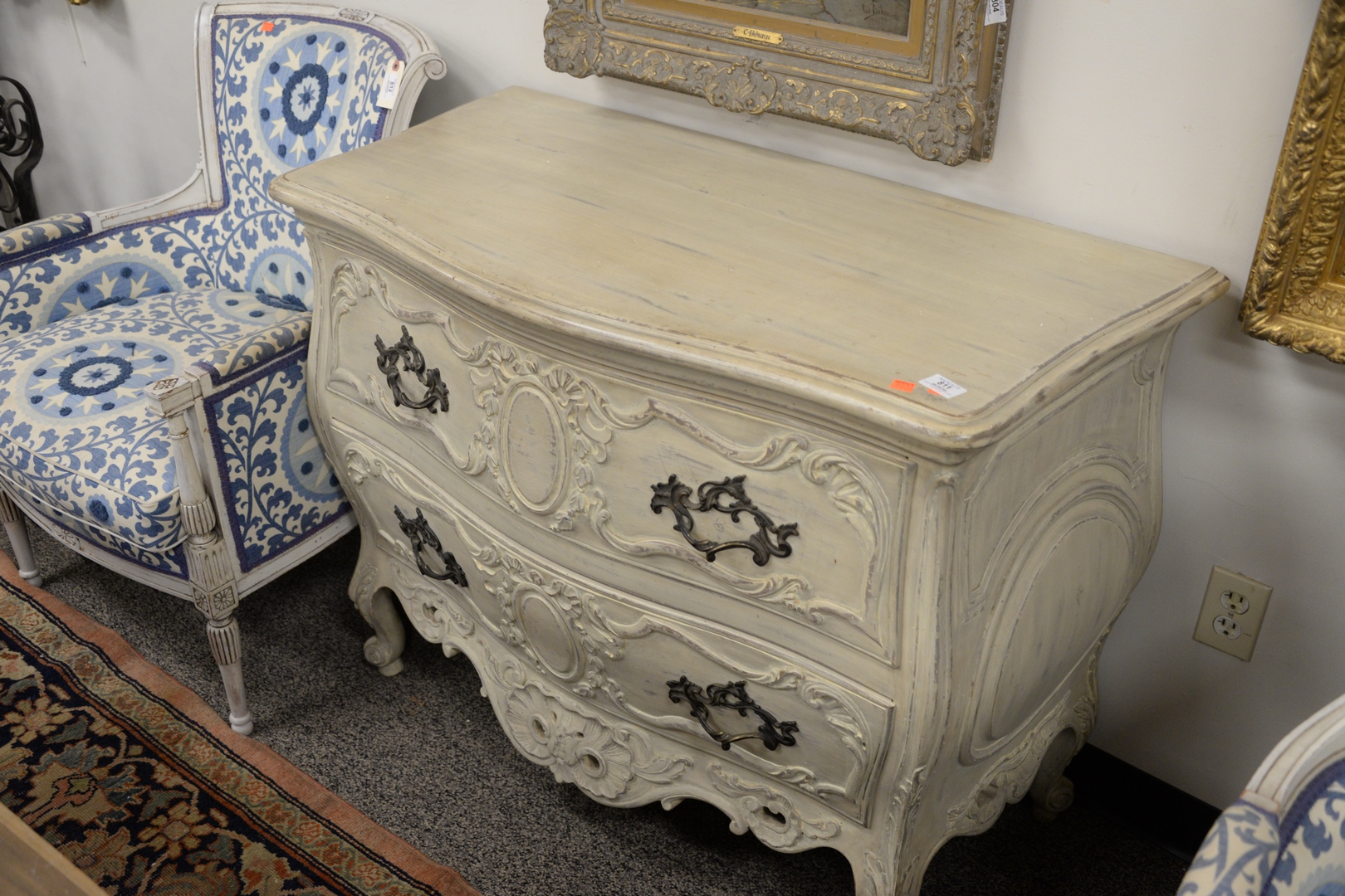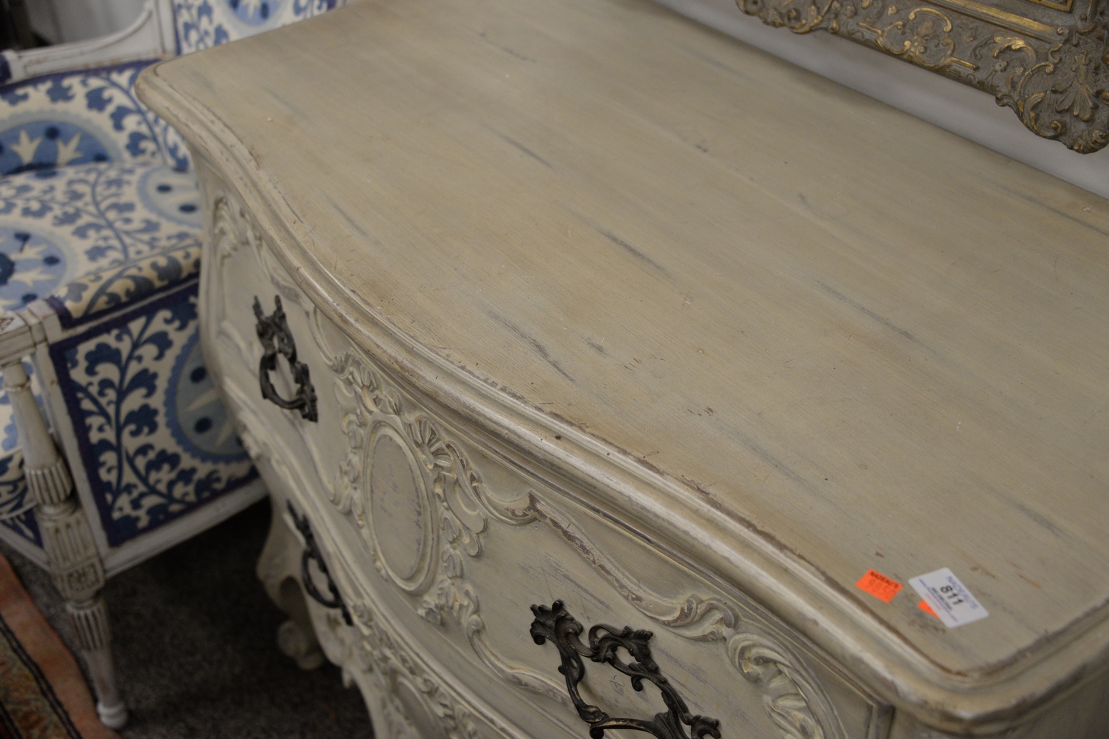 Louis XV Style Commode, height 35 inches, width 45 inches.