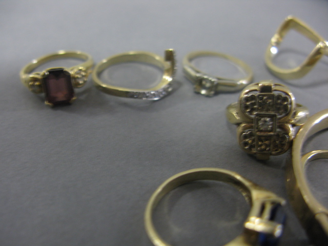 Bag lot of 14k gold to include a small bangle bracelet and six rings