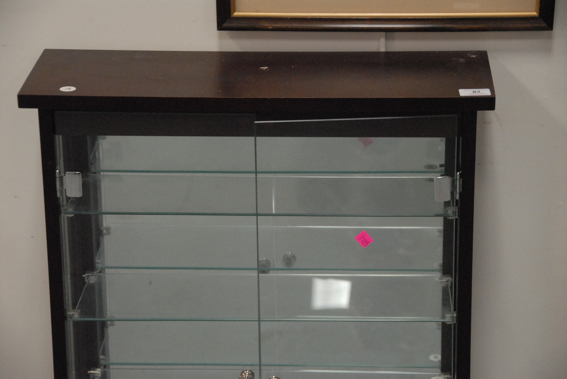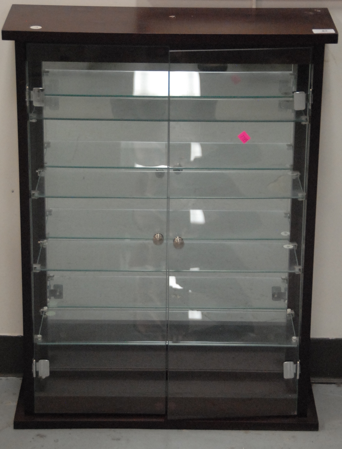 Contemporary curio cabinet with glass shelves, ht. 32in. wd. 24in.