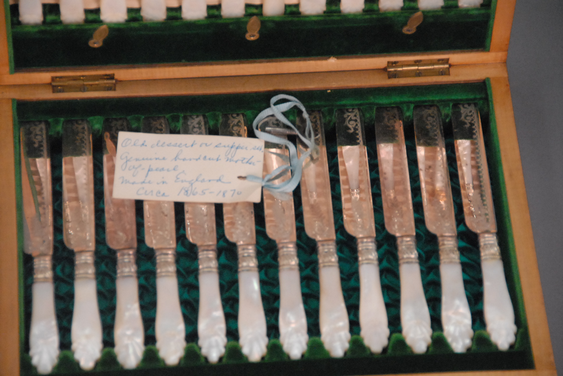 Dessert set fit in fitted box with mother of pearl carved handles.