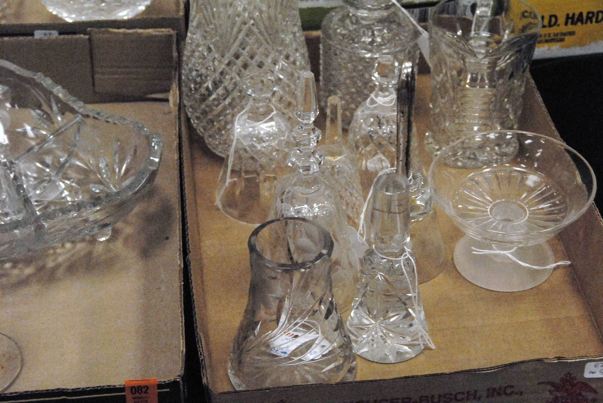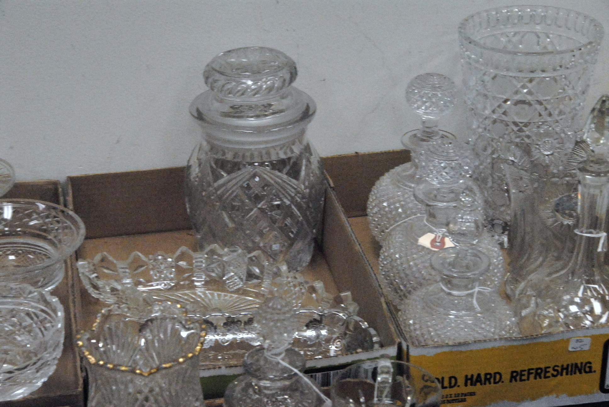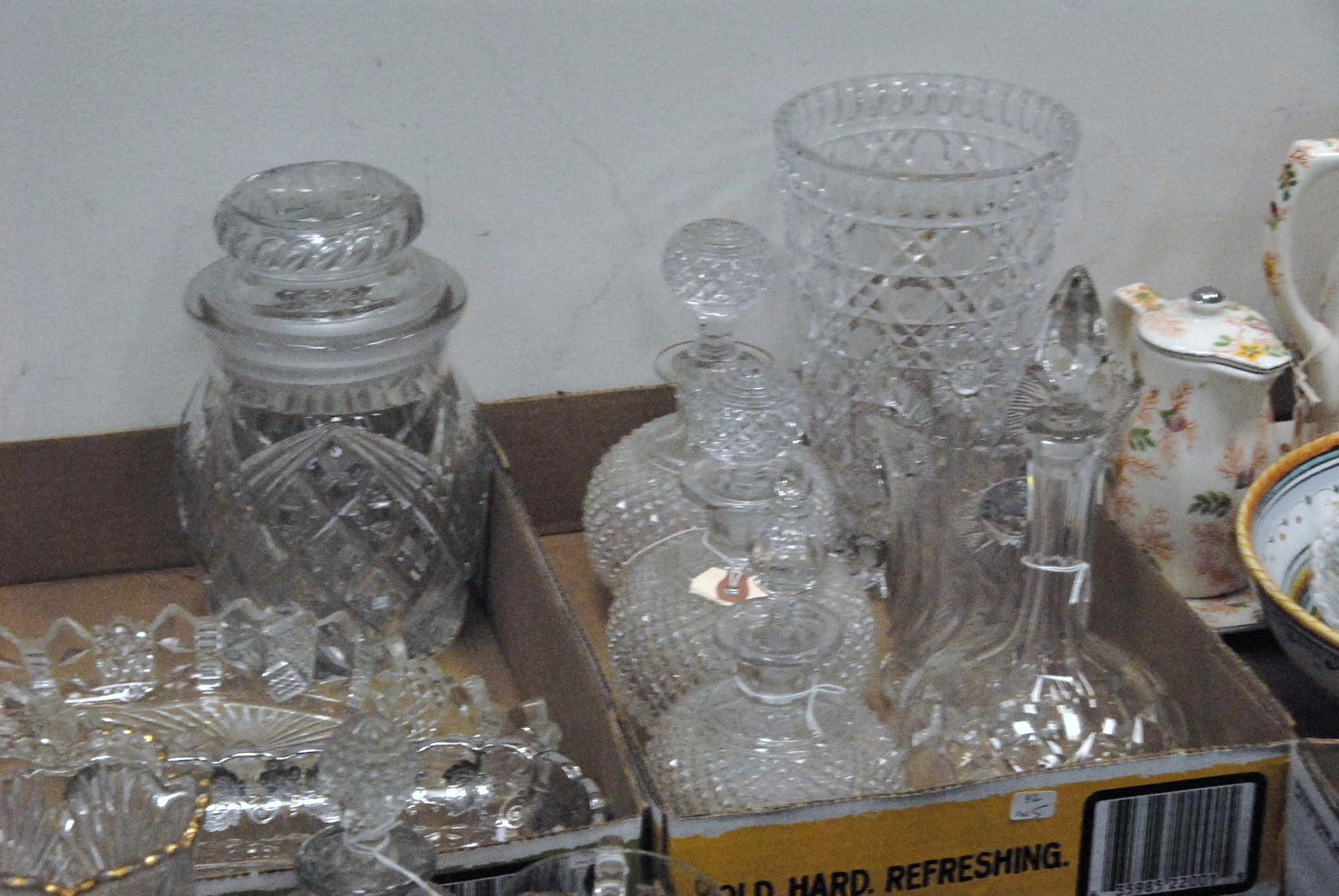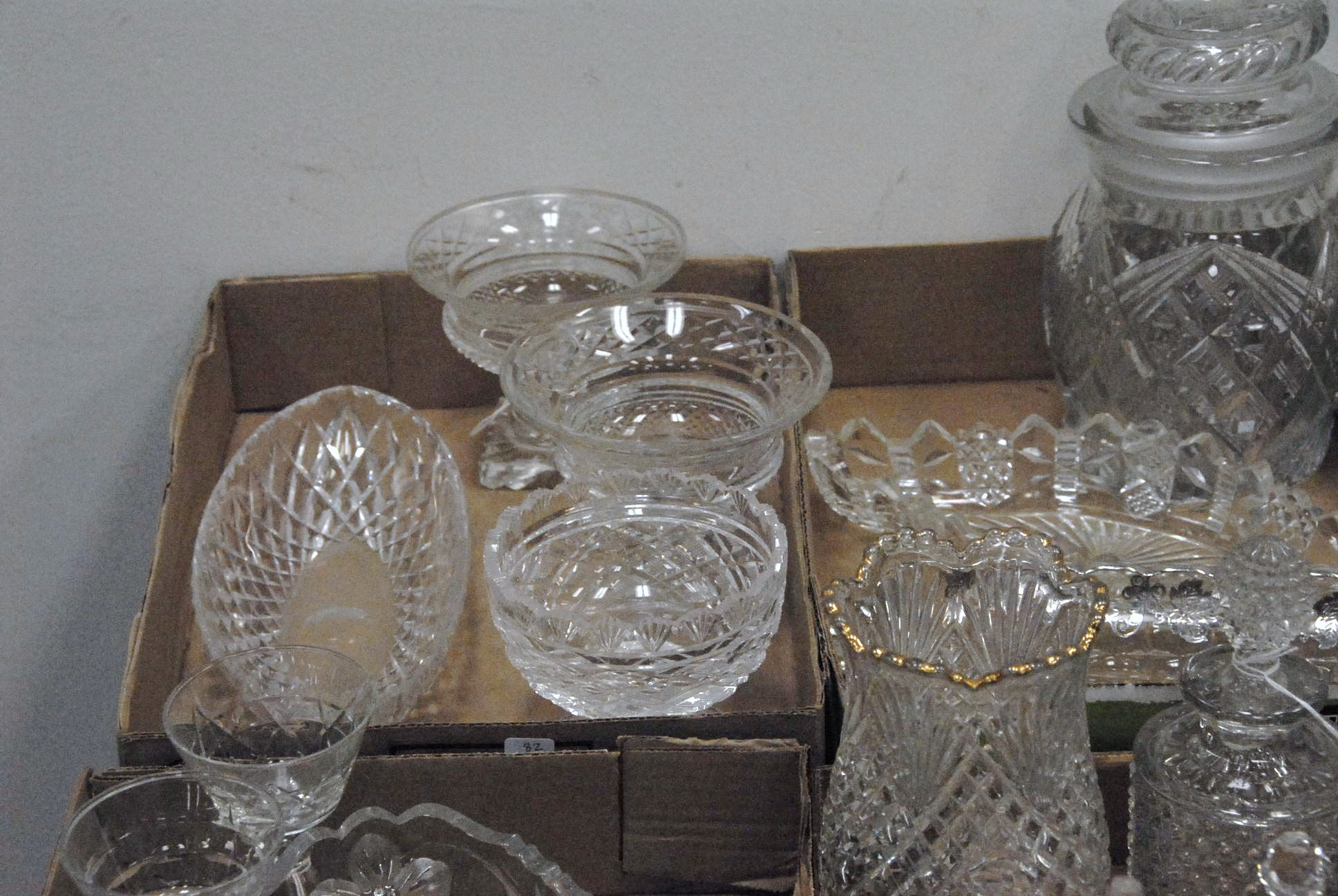 Five box lots of cut crystal and pressed glass to include decanters and cologne bottles