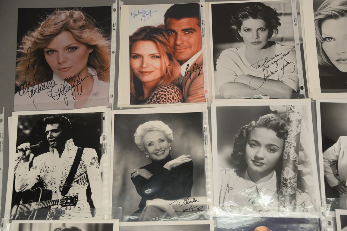 Lot 82: Group of 28 photographs, 24 are autographed including 2 Michelle Pfeiffer one with COA, 3 Priscilla Presley, 1 Christopher Plummer…
