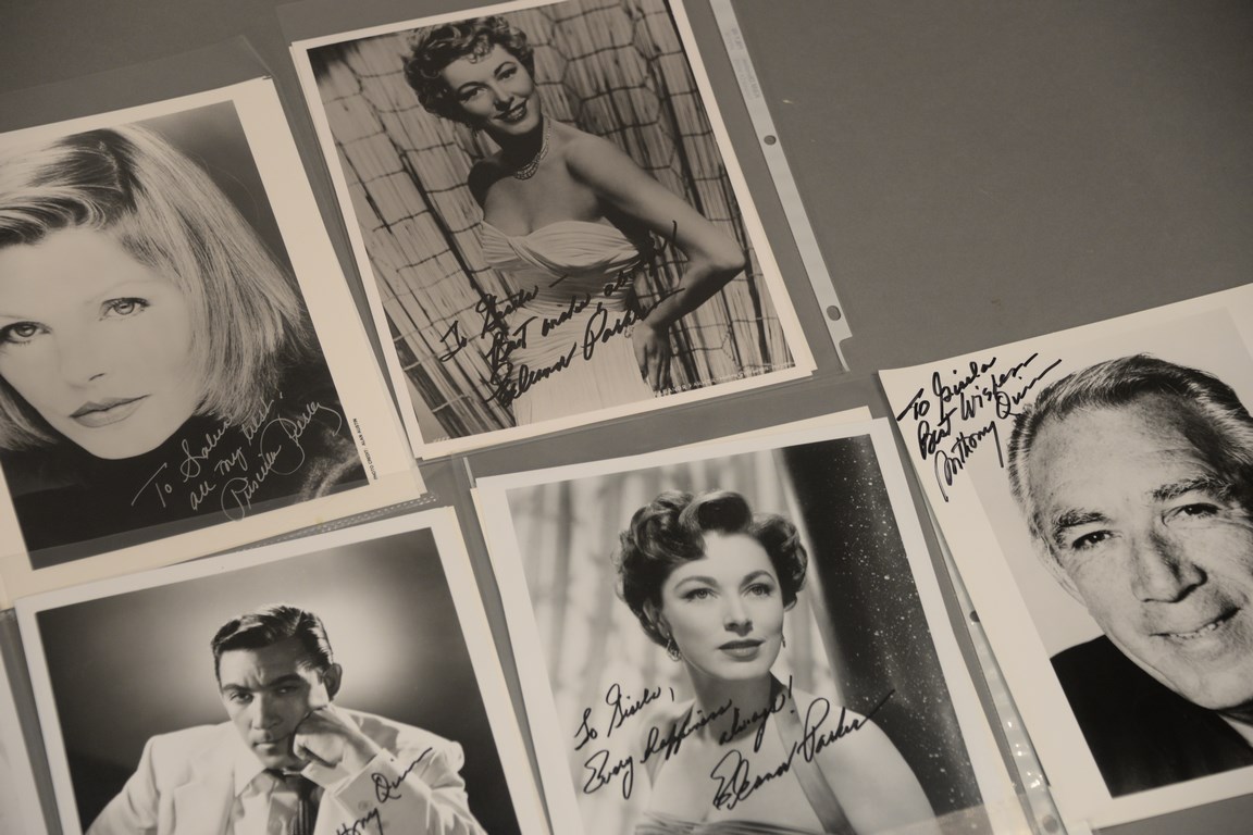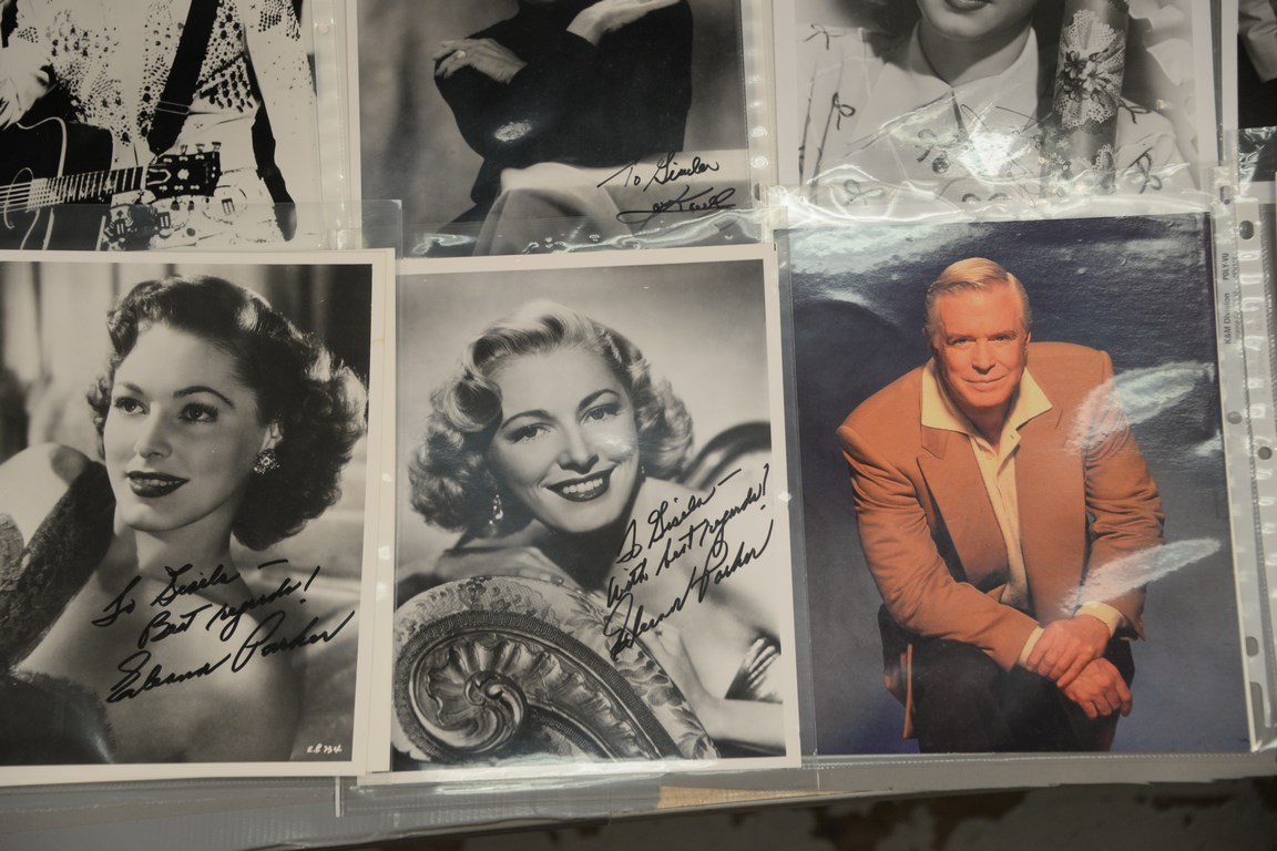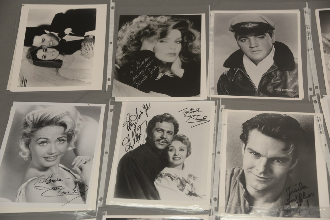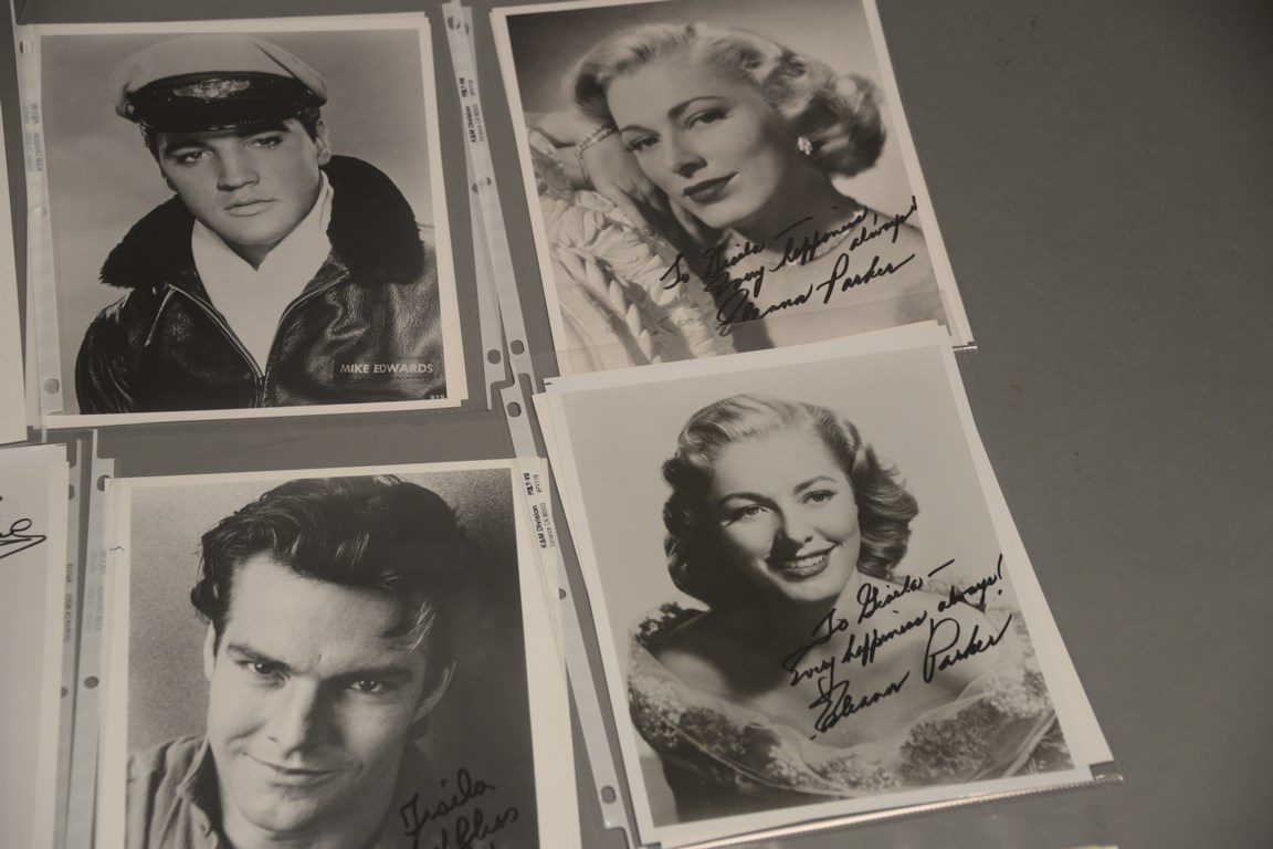 Group of 28 photographs, 24 are autographed including 2 Michelle Pfeiffer one with COA, 3 Priscilla Presley, 1 Christopher Plummer, 9 Eleanor Parker, 4 Jane Powell, 1 Juliette Prowse, 1 Dennis Quaid, 1 Suzanne Pleshette, and 1 Anthony Quinn, and 4 unsigned photographs including 3 Elvis Presley and 1 George Peppard.