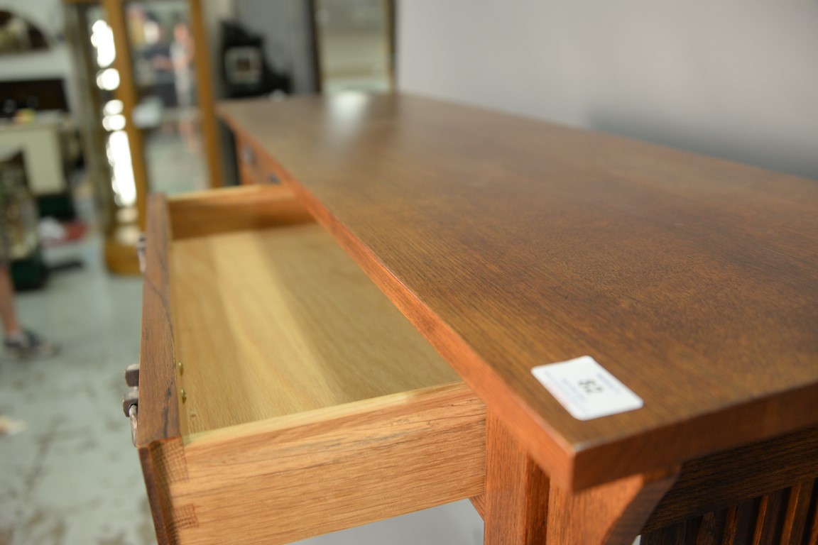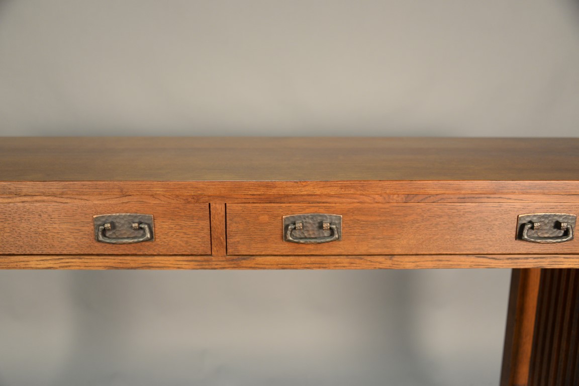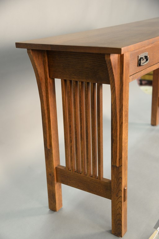 Stickley oak hall table having two drawers. ht. 28 1/2 in. wd. 54 in. dp. 16 in.