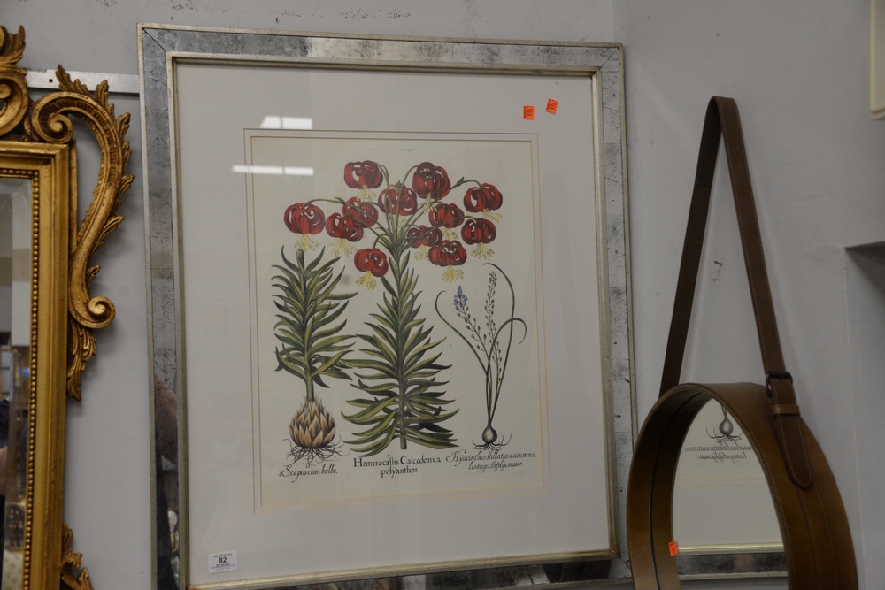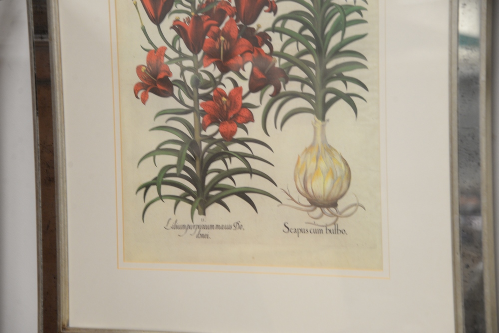 Two After Basilius Besler (German, 1561 – 1629), digital prints, “Hemerocallis Calcedonia Polyanthos” and “Scapus Cum Bulbo,” both in matching mirrored frames, 20 1/2″ x 16 1/2″, Provenance: David and Cynthia Kim, 22 Stoney Wylde Lane, Greenwich, Connecticut. View home by visiting: https://www.zillow.com/homedetails/22-Stoney-Wylde-Ln-Greenwich-CT-06830/177238281_zpid/.