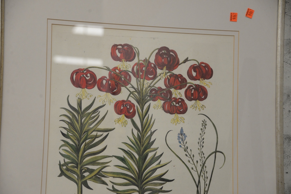 Lot 82: Two After Basilius Besler (German, 1561 – 1629), digital prints, “Hemerocallis Calcedonia Polyanthos” and “Scapus Cum Bulbo,” both i…