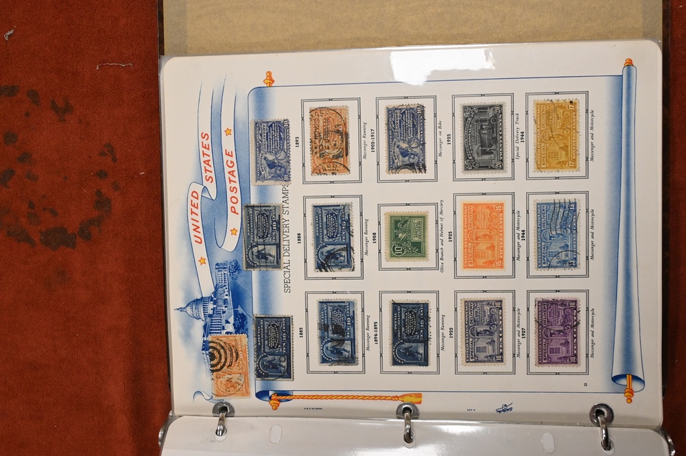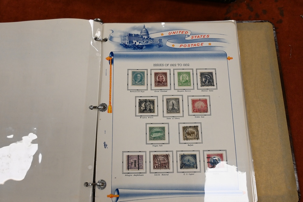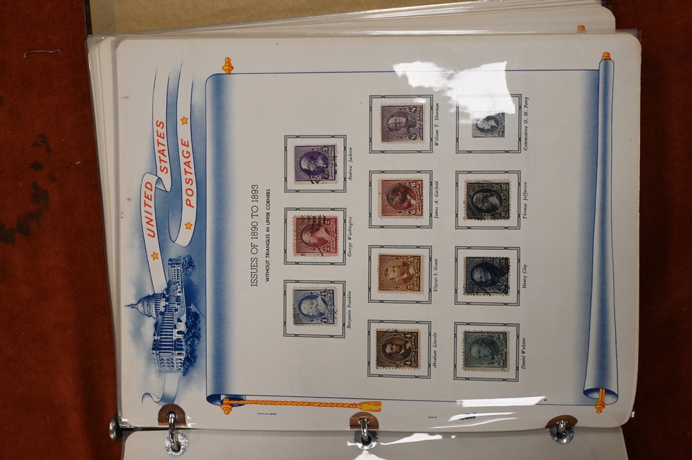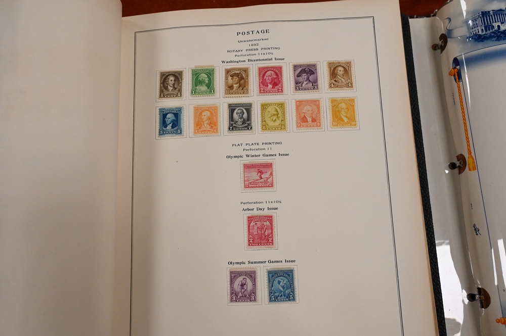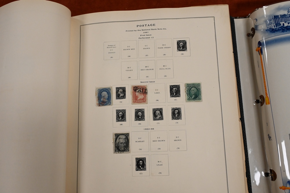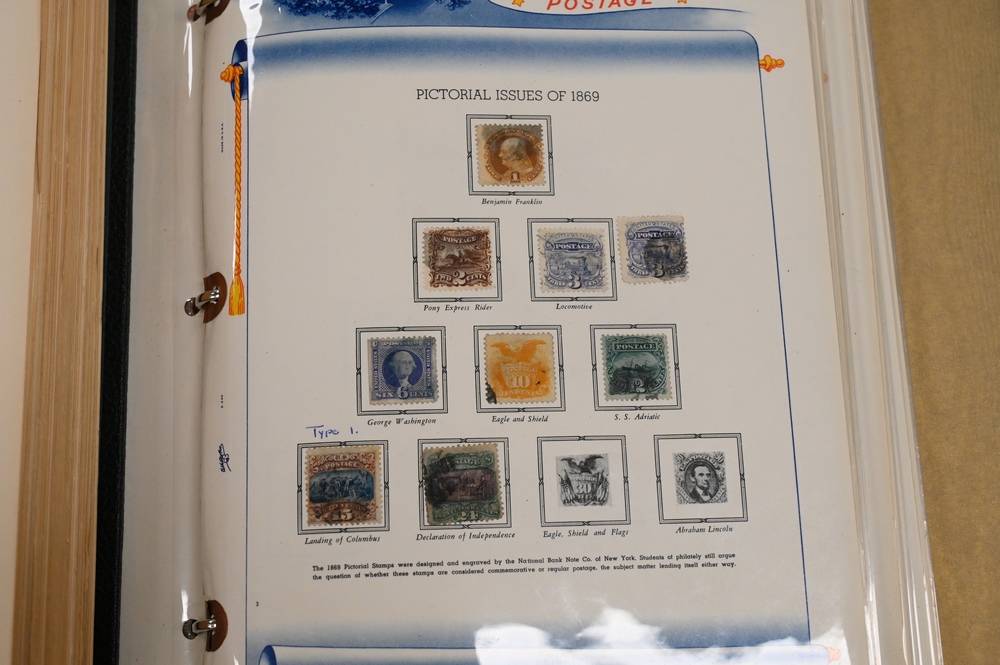 Lot 82: Two Albums of United States Mint and Used Stamps, to include some stamps hinged in the albums, others in mounts, some better items including 504 Great Zeppelin, Columbians, 1 cent through 24 cent of the 1869 series and the Kansas/Nebraska series.