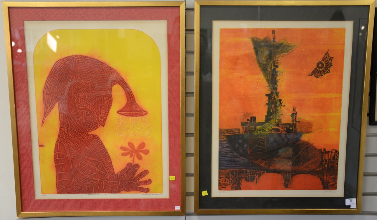 Lot 82: Two colored lithographs including Sergio Gonzalez Tornero 73 lithograph Man Cultivating his Garden 16/150 and Marka 93 lithograph…