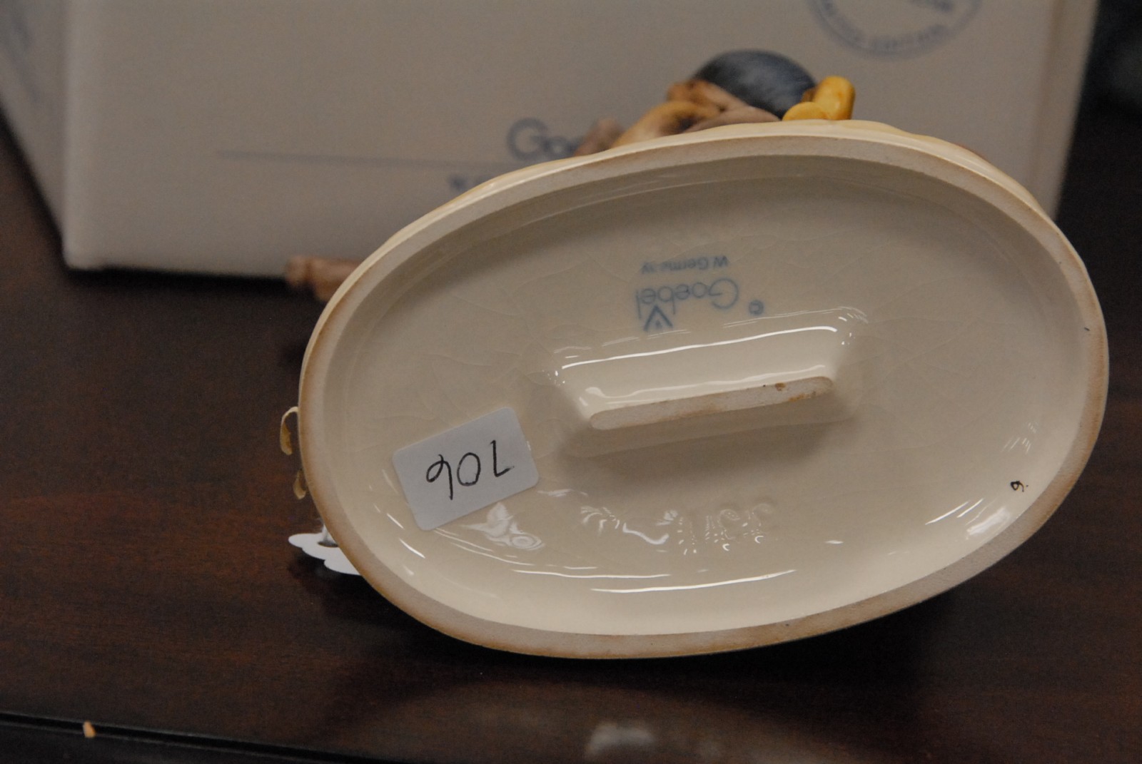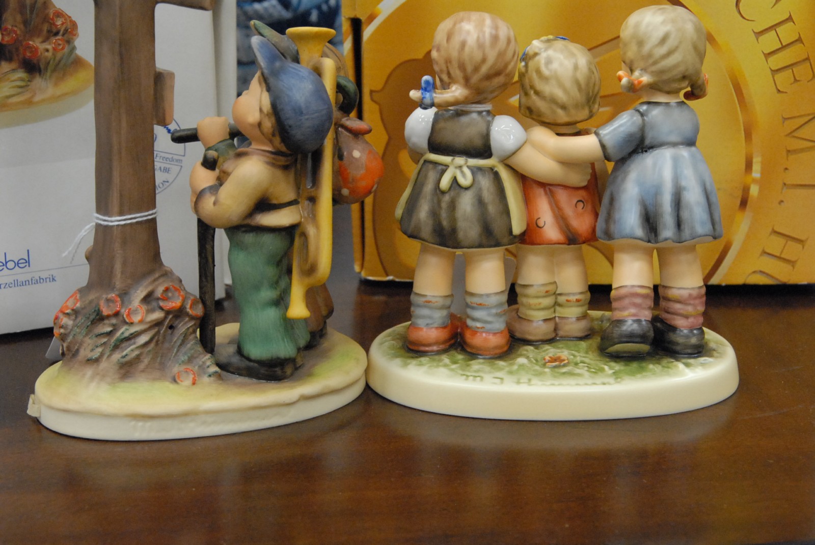 Two Hummels with original boxes, Crossroads and Bashful Serenade.