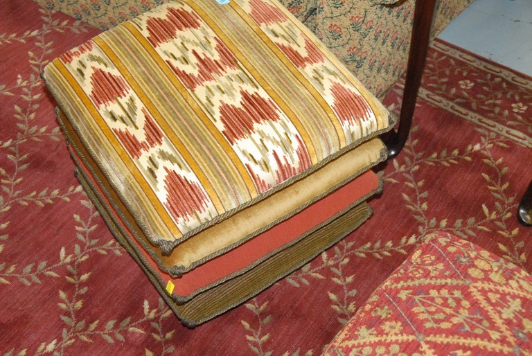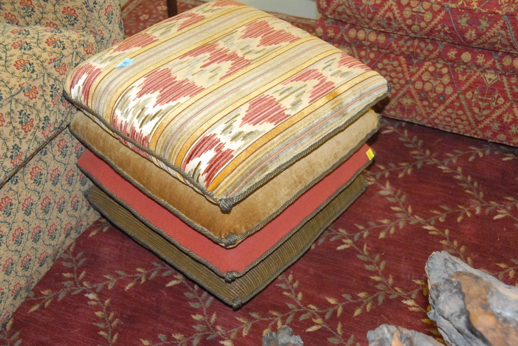 Lot 82: Upholstered cushion foot stool of four faux pillows, 19 x 19