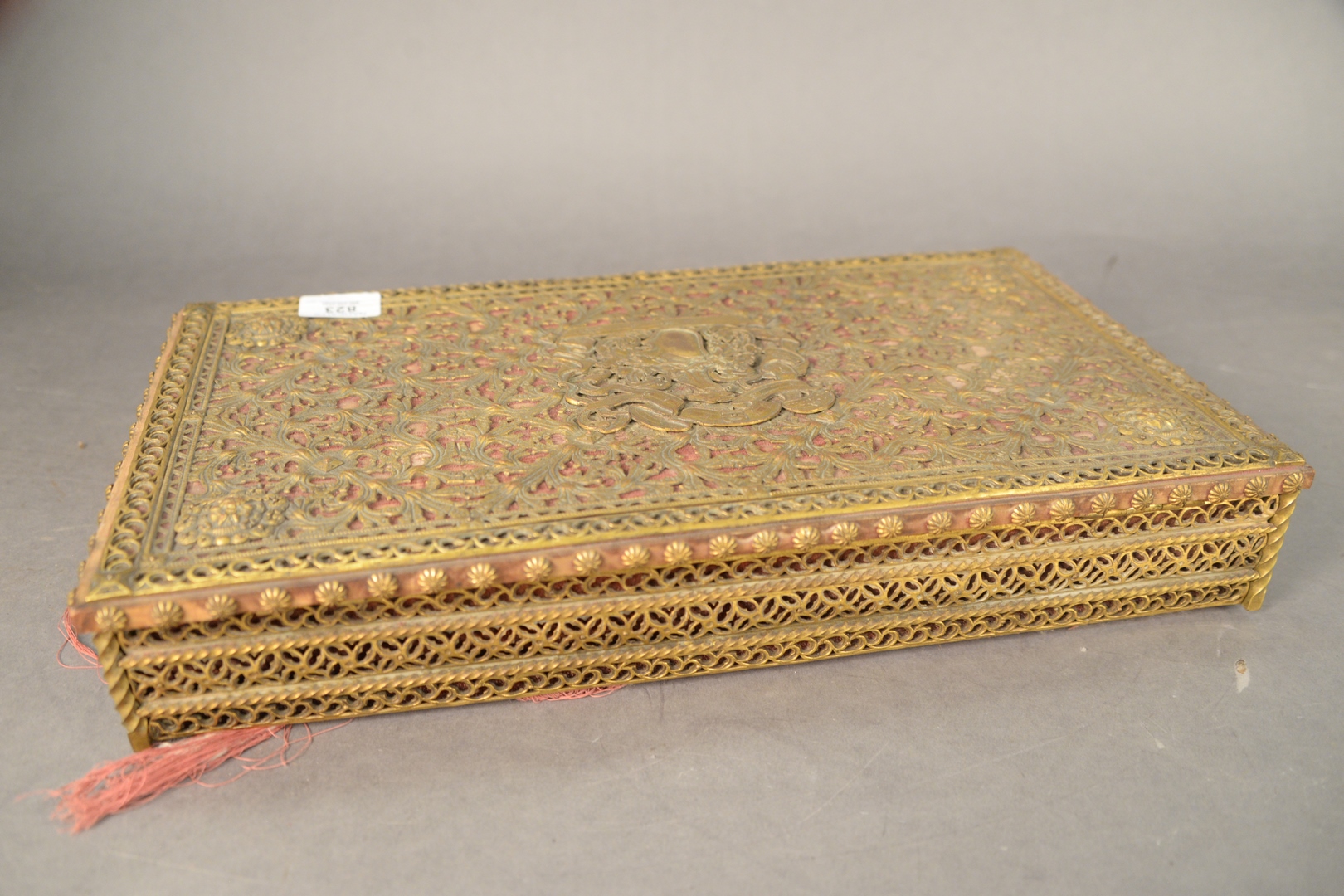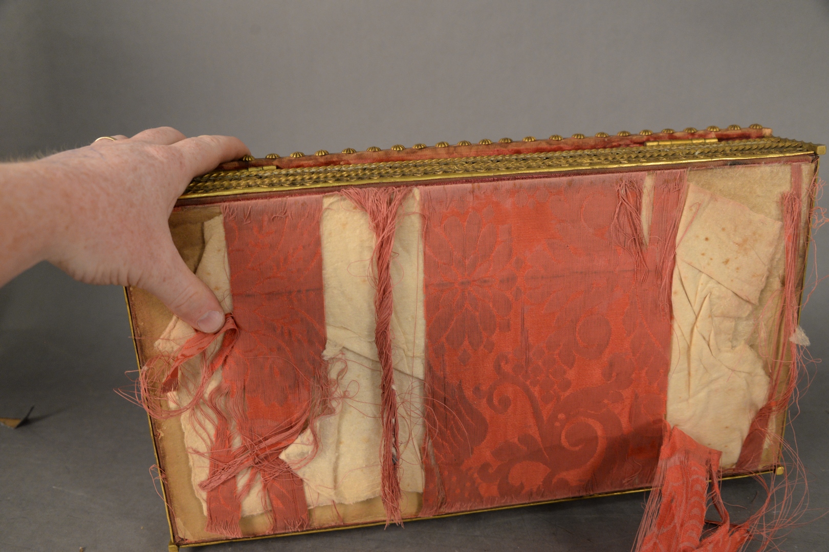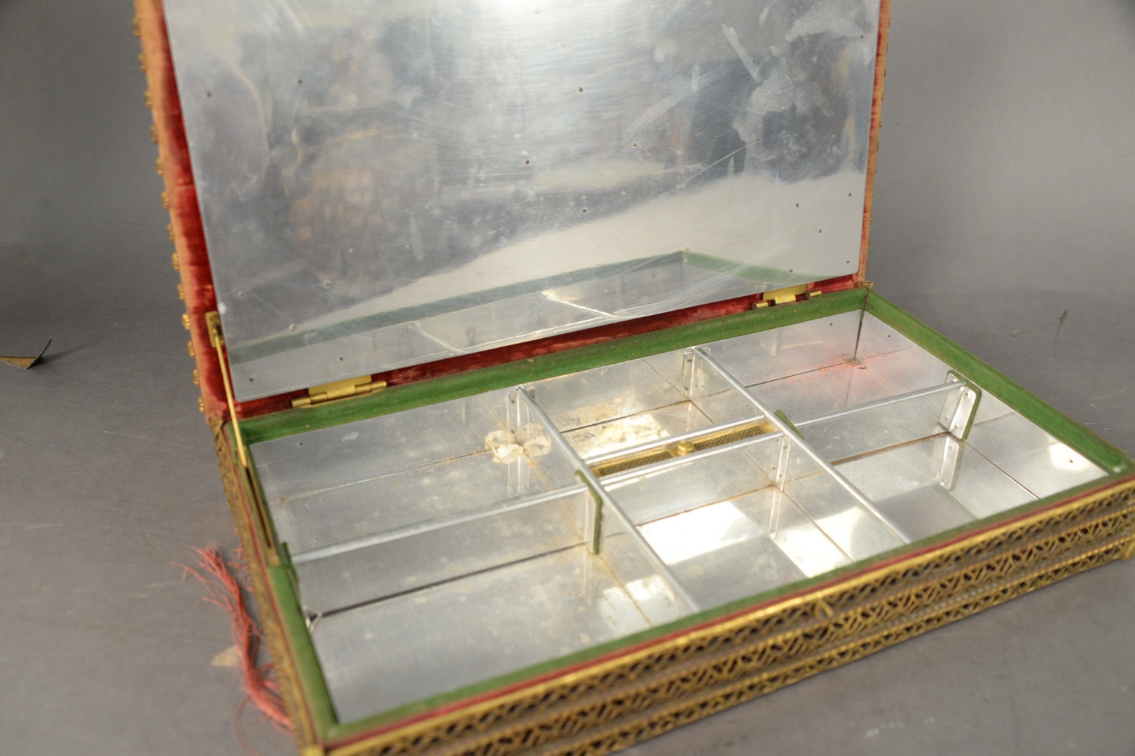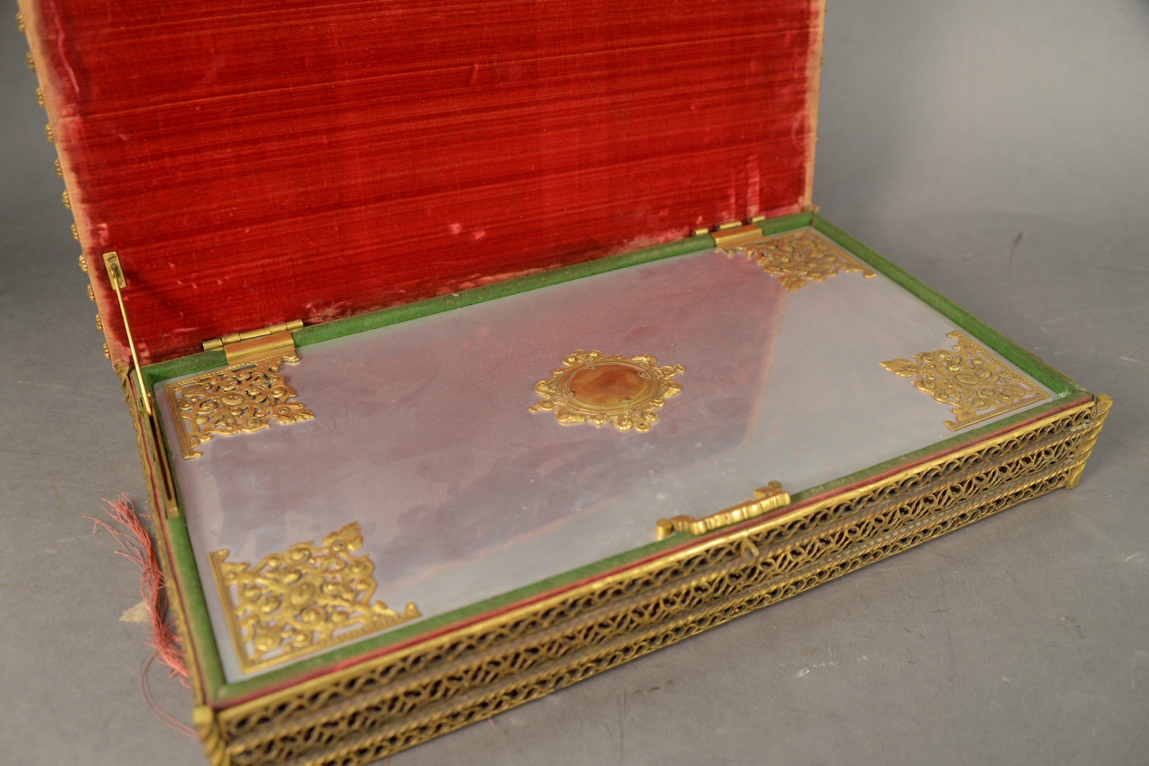 Lot 823: E.F. Caldwell Gilt Bronze Humidor, having original lock and key, height 2 3/4 inches, width 17 3/4 inches, depth 9 3/4 inches, loss…