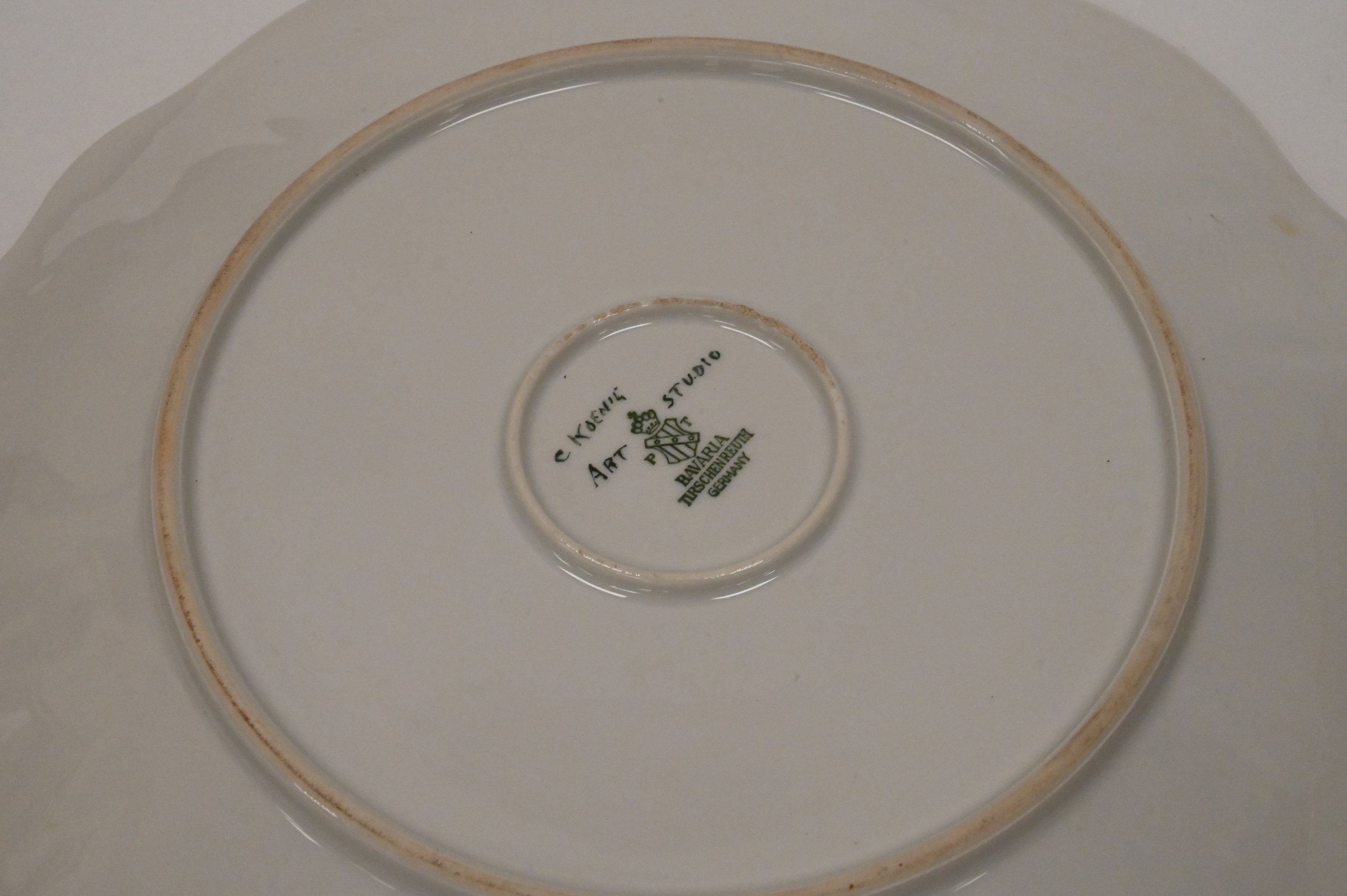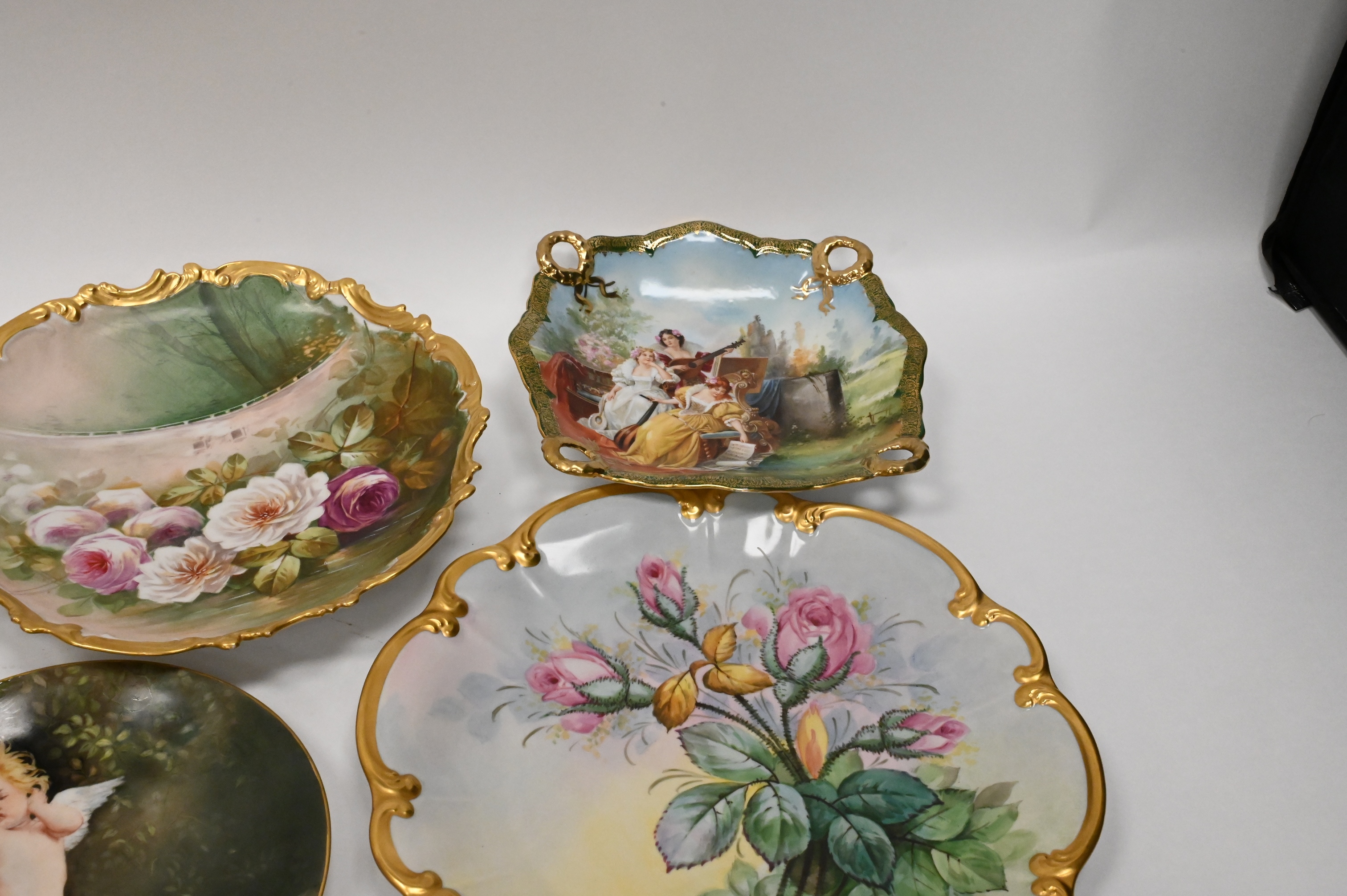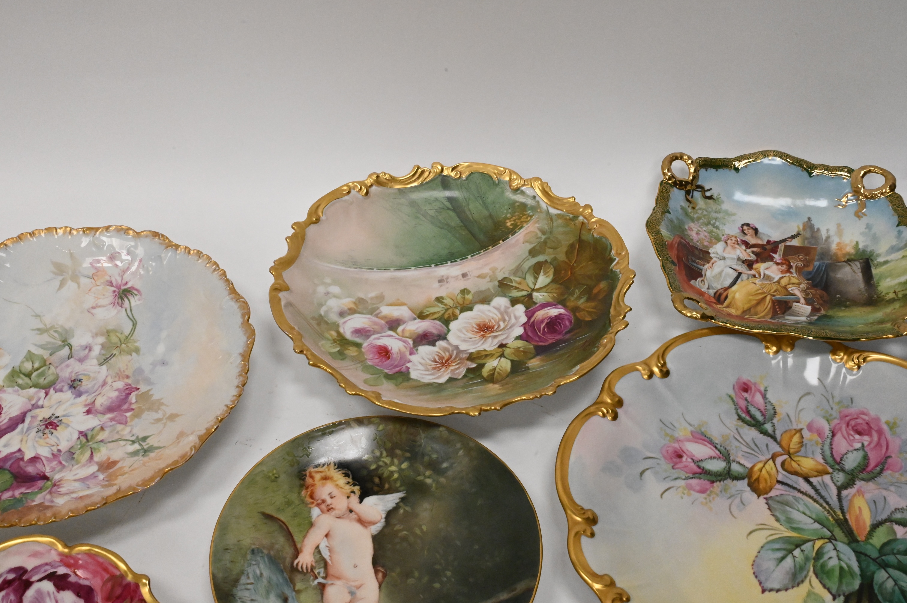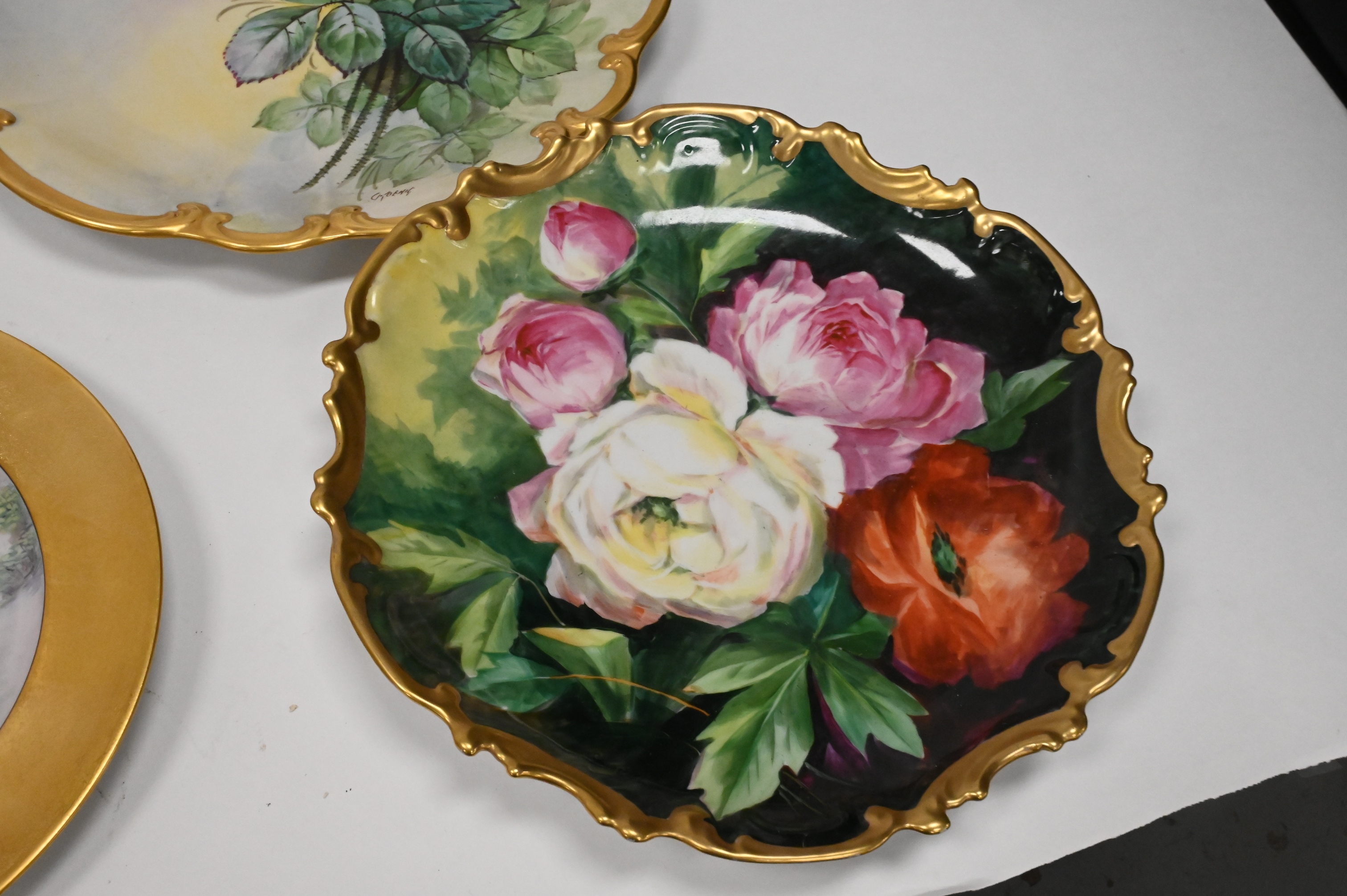 10 Piece Hand Painted Porcelain Plates, to include Limoges, Bavaria Tirschenreuth, Reichenbach, and Pickard, some signed, largest diameter 14 1/2 inches.