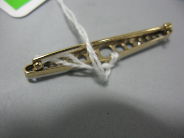 14K and platinum pin with three diamonds, several diamonds missing, 6.3 grams.