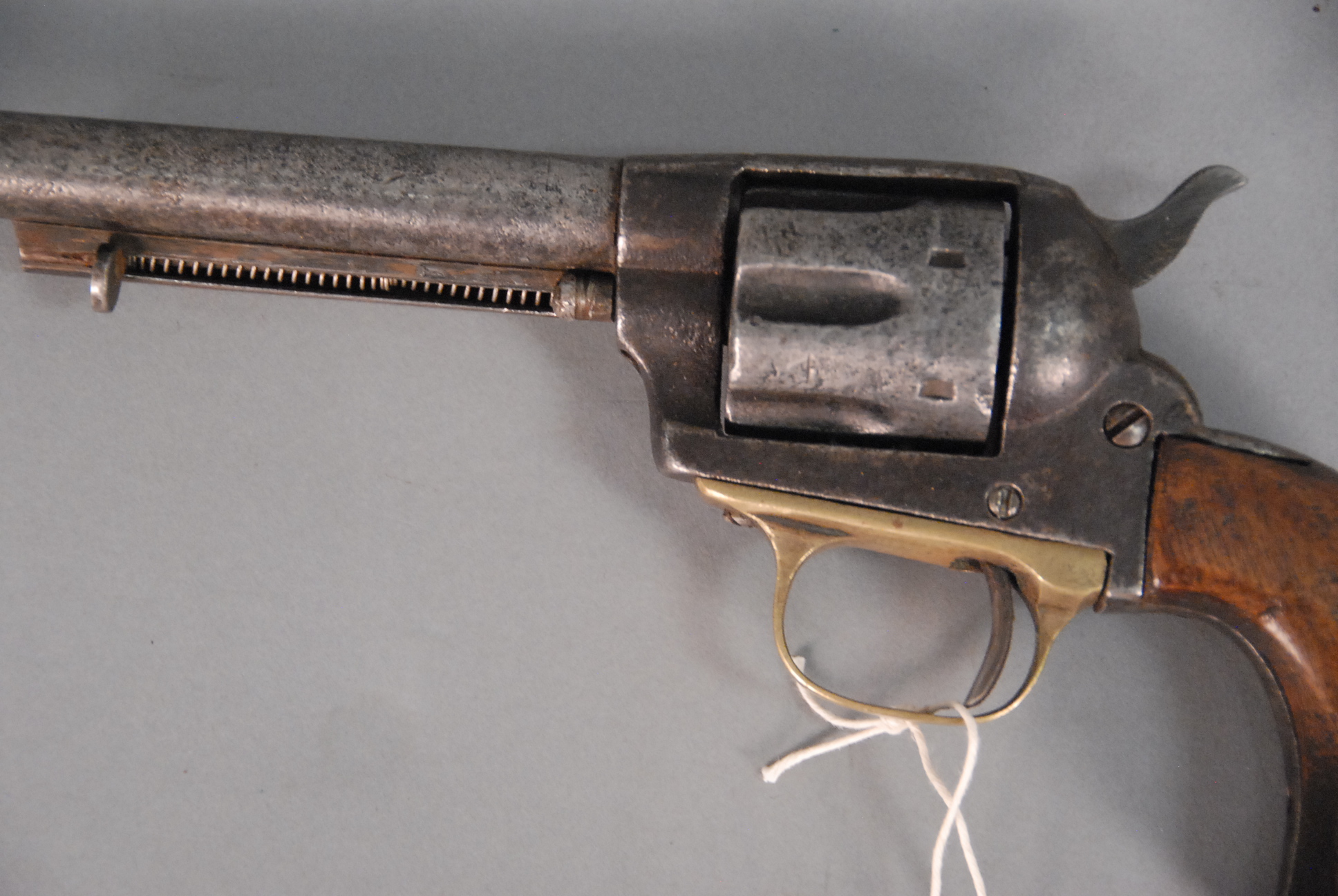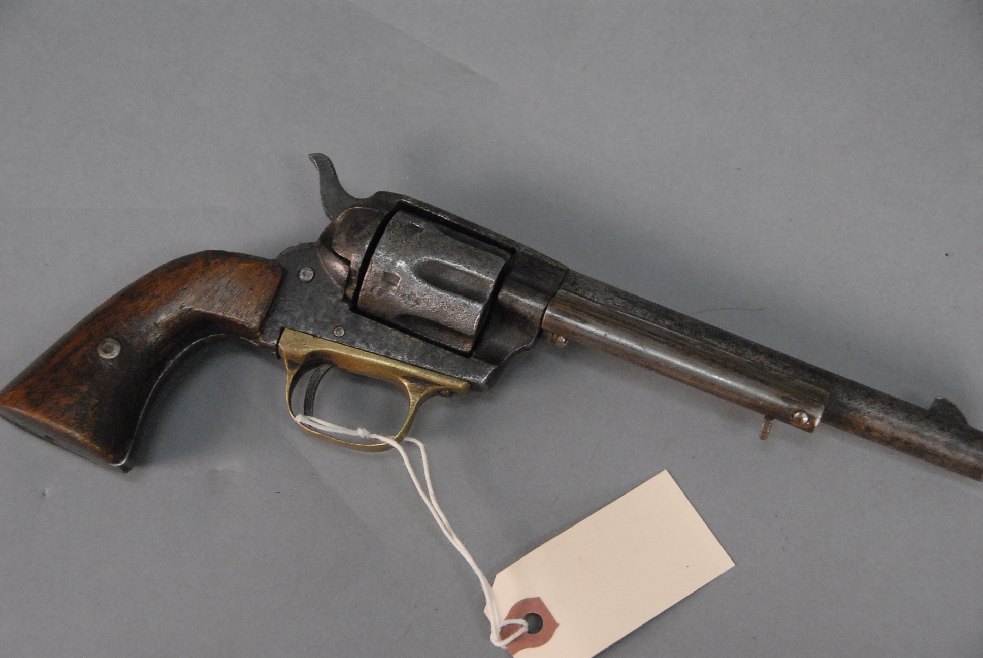 Lot 83: 19th Century handmade revolver marked on top of barrel The 38 Central Cartridge Fits this Revolver 1880’s Army style, 6 barrel.