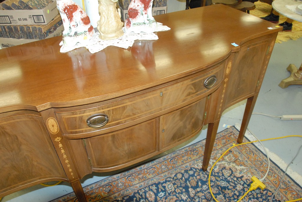 Lot 83: Big Furniture Company Federal style sideboard with bell flower, line, and panel inlays, ht. 37in. wd. 66in.