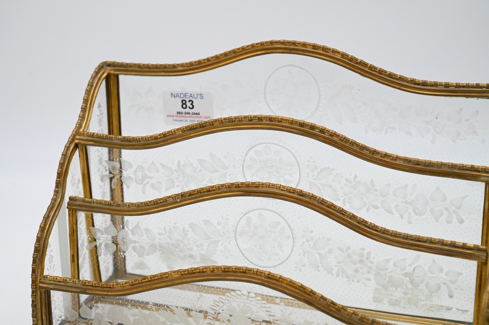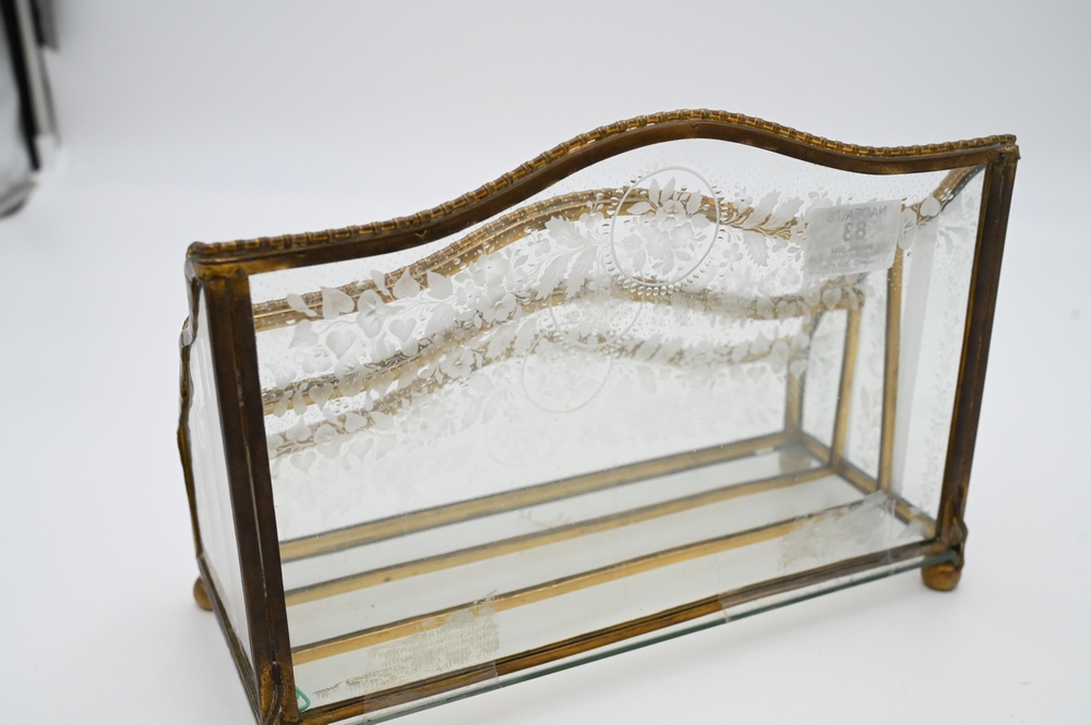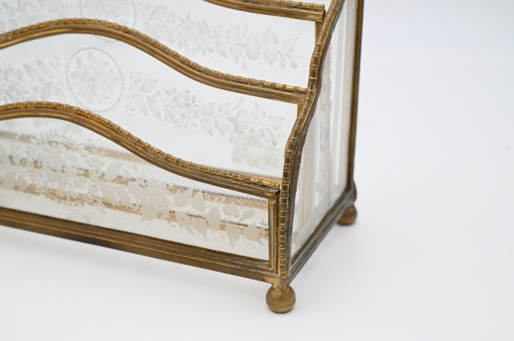 Brass and Cut Crystal Letter Holder, height 8 1/4 inches, width 11 inches.