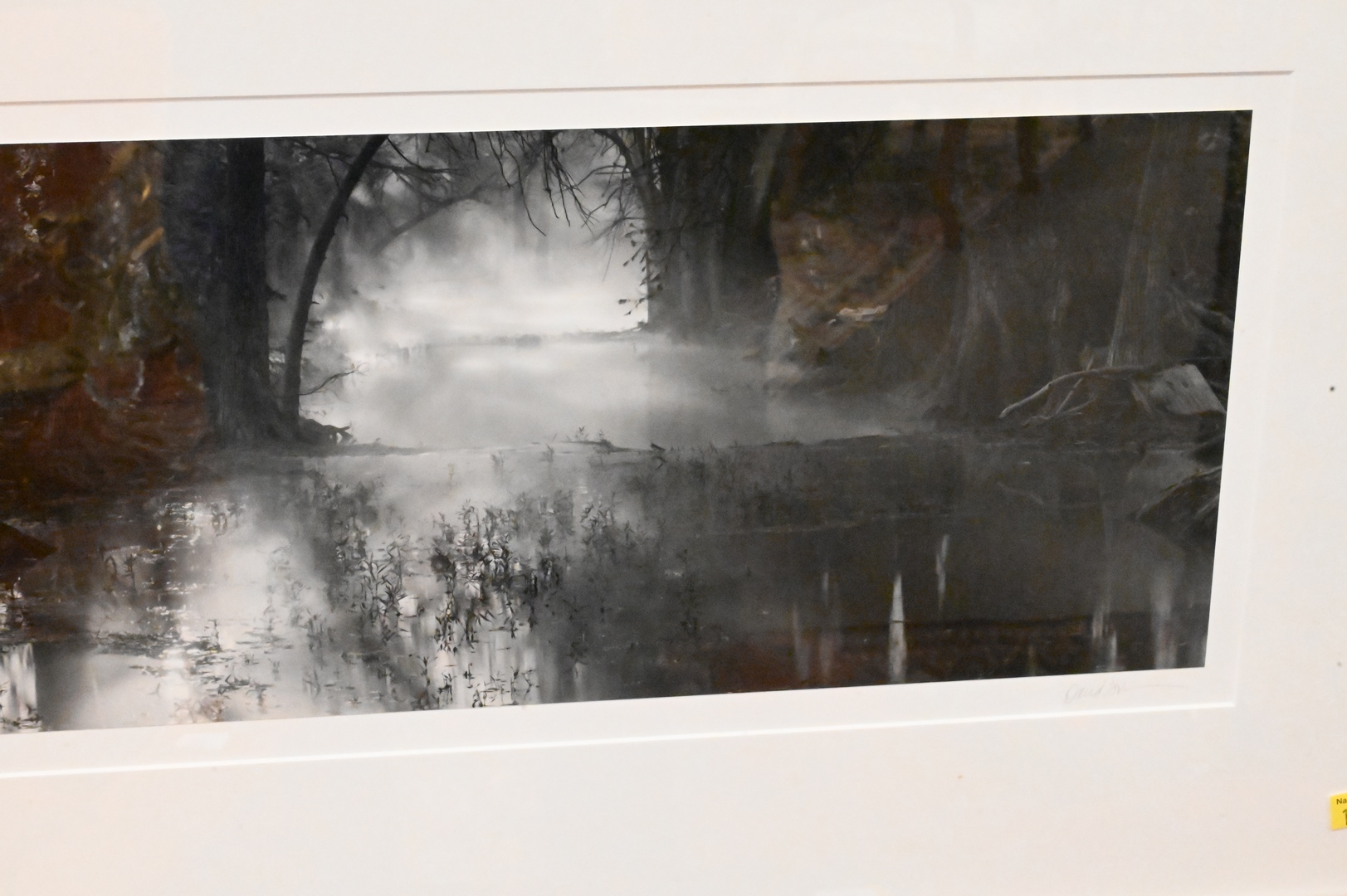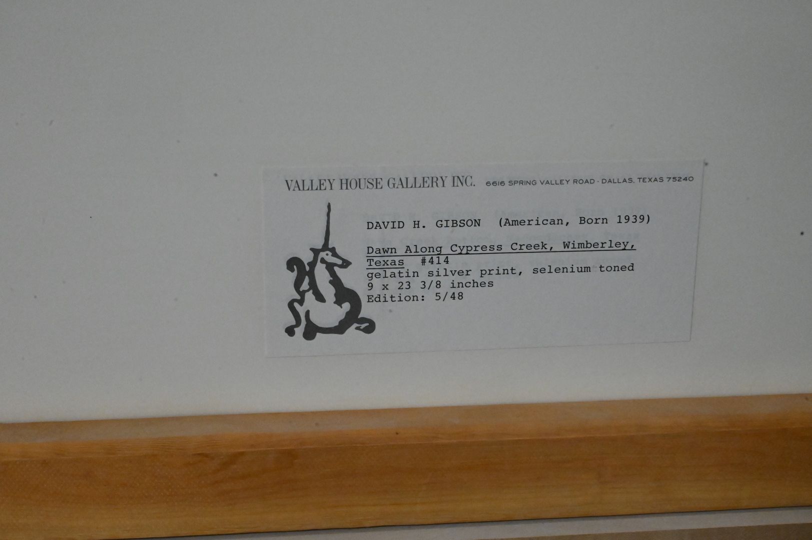 David Gibson (b. 1939), Dawn Across Cypress Creek, Wimberley, Texas, gelatin silver print, edition 5/48, Valley House Gallery, 9″ x 23 3/8″.