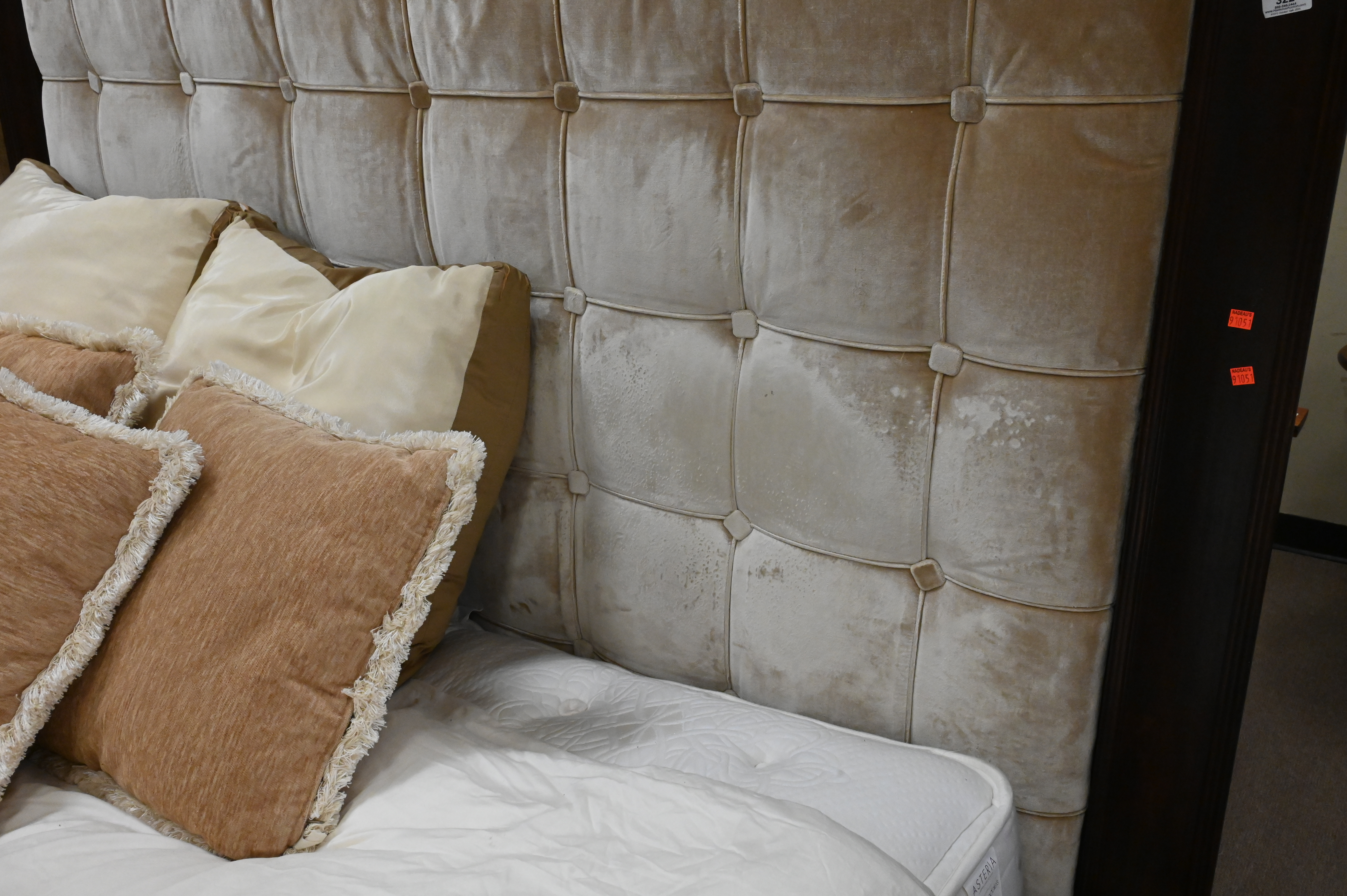 with tufted inset and headboard and upholstered side tails and foot, complete with Asteria mattress
