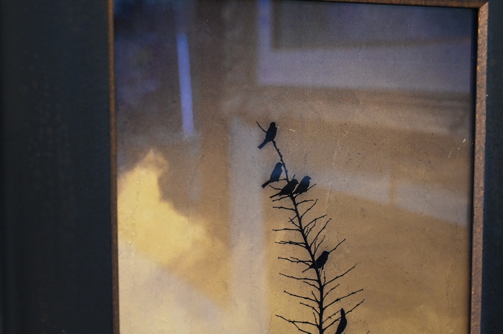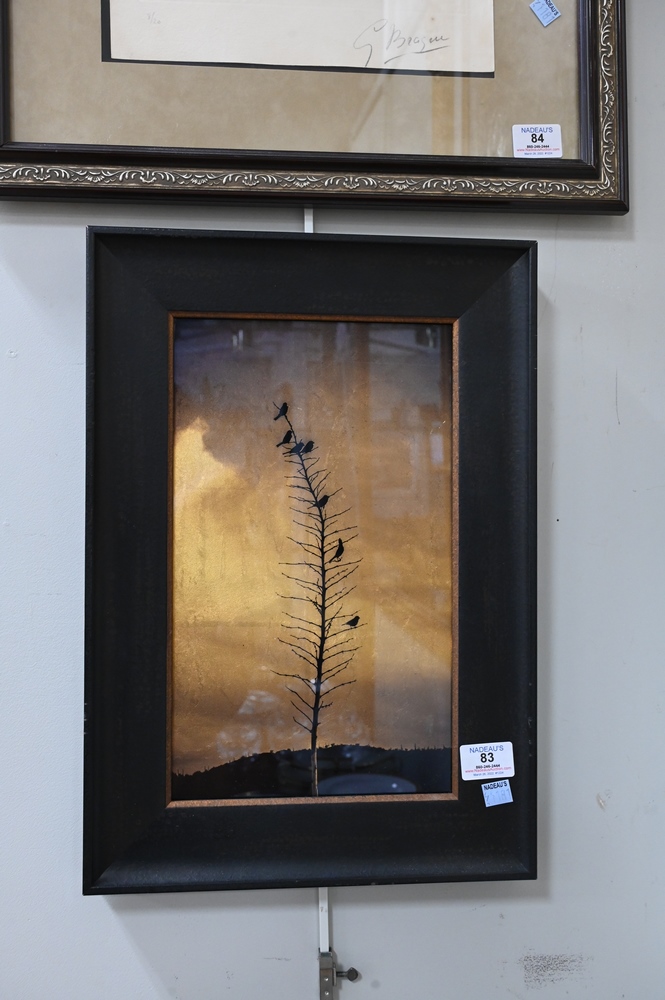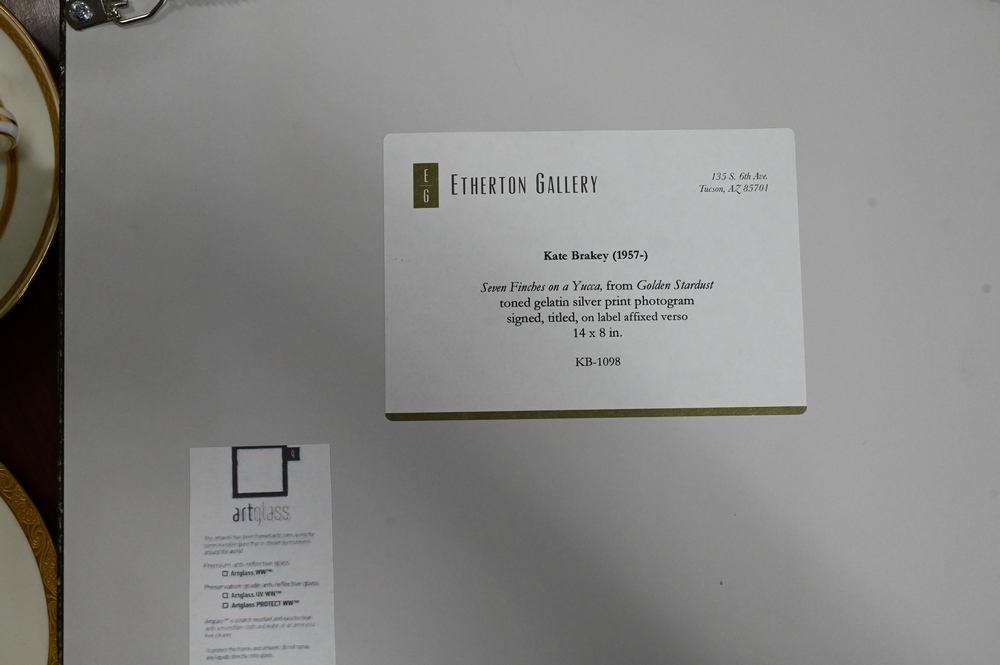 Lot 83: Kate Breakey (b. 1957), toned gelatin silver print photogram, Seven Finches in a Yucca, in contemporary frame, 14″ x 8″.