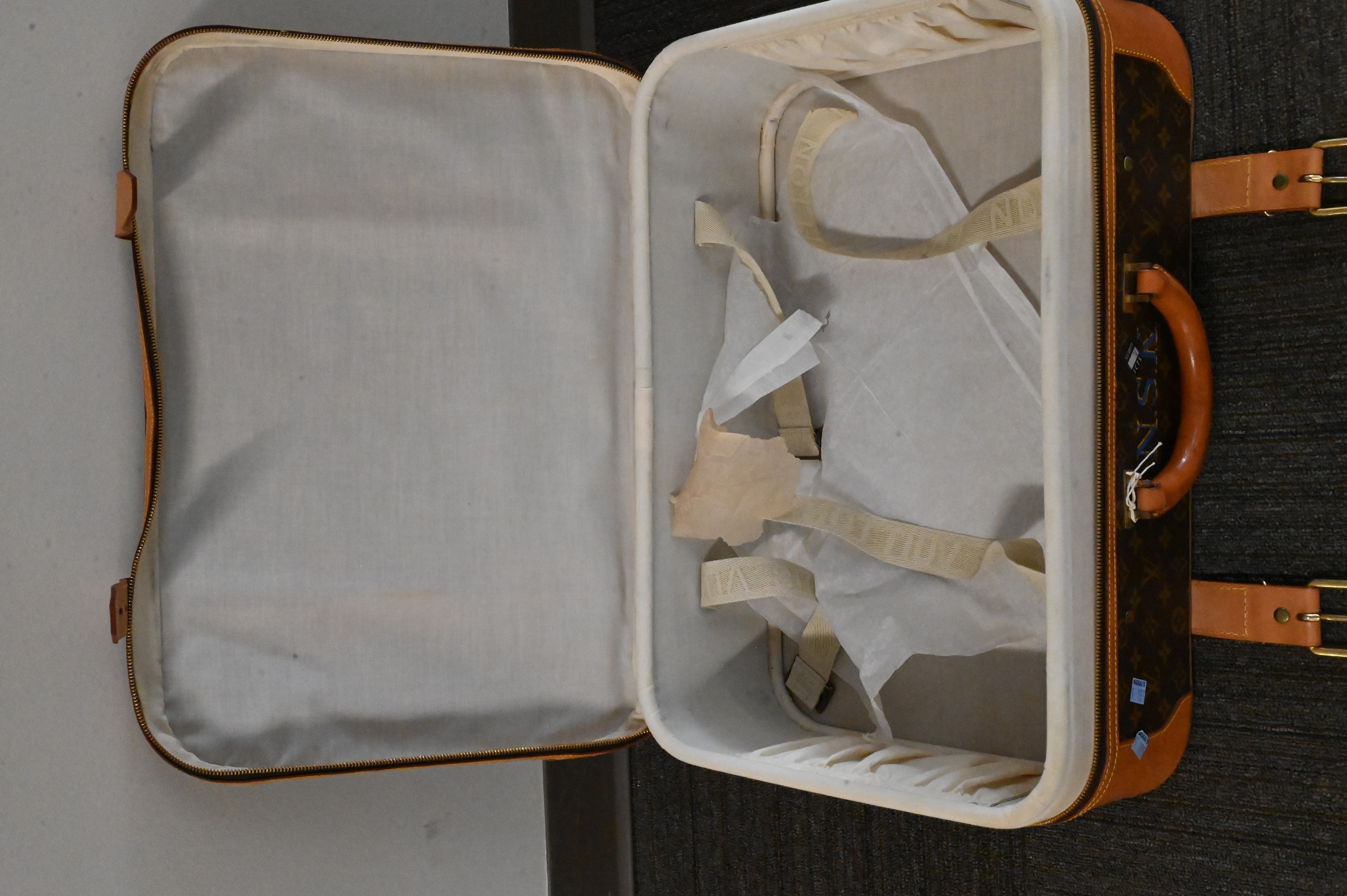 Lot 83: Louis Vuitton Double Strap Leather Suitcase